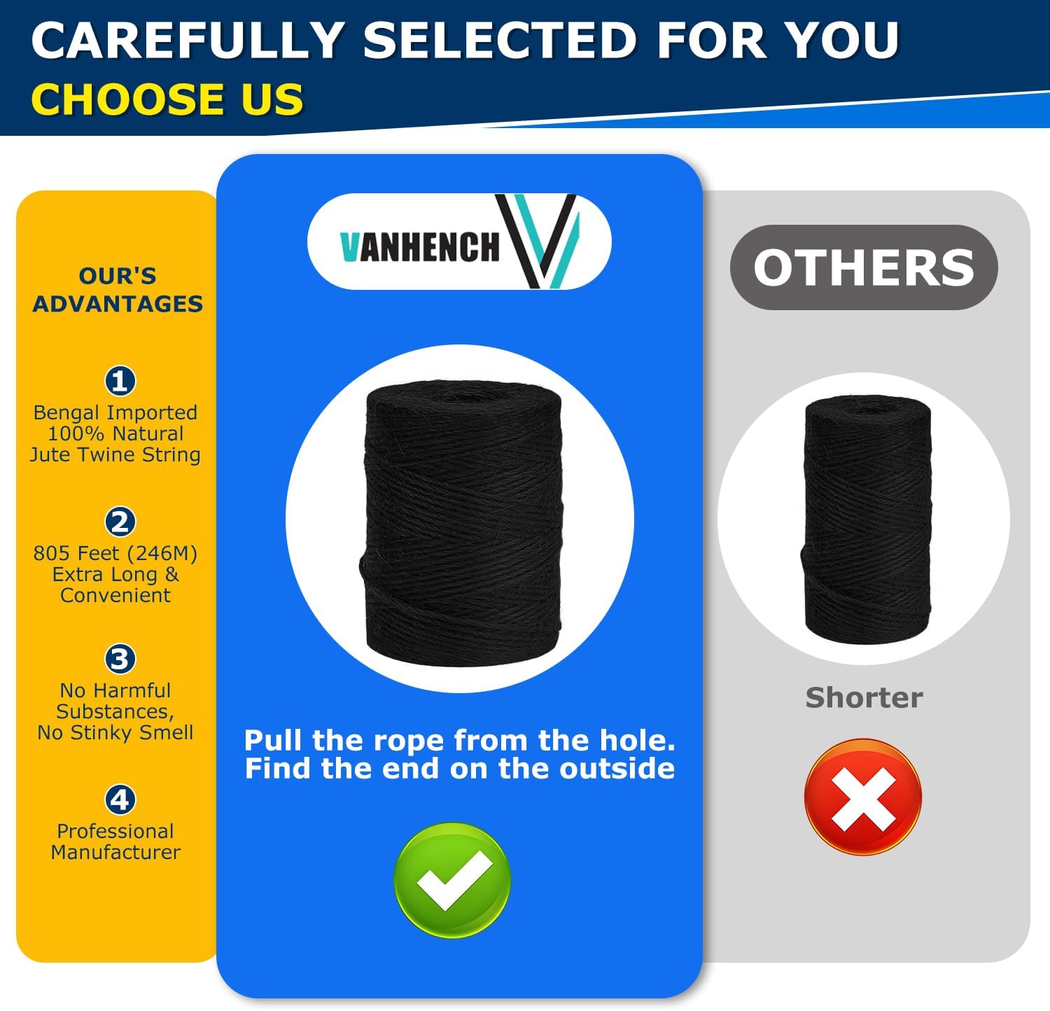 Vanhench 805ft Black Twine String, Black Hemp Jute Rope Cord Twine for Christmas Decorations, Arts & Crafts, Gift Wrapping, String for Bracelets, Art Decoration Packing Material