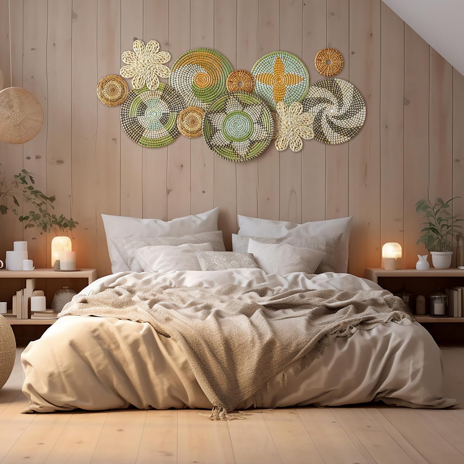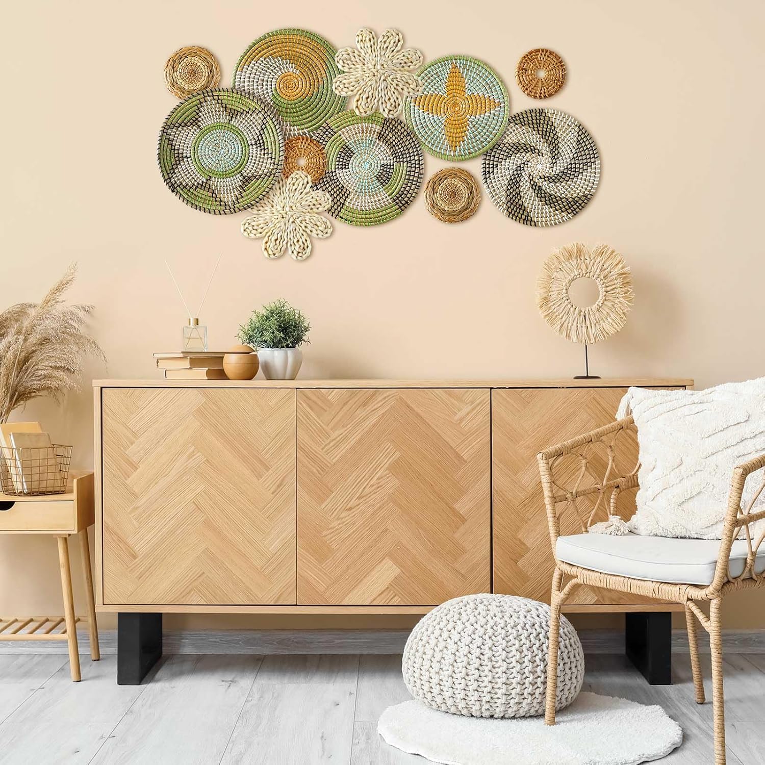 • Wide Range of Applications: boho basket wall decor set as placemats, or as decorative baskets to store toys and accessories, the rustic basket wall art is suitable for many occasions, such as hotels, restaurants, living rooms, bedrooms, schools, stores, offices, dorms, shops, Christmas and more, bringing you an elegant and classic feeling