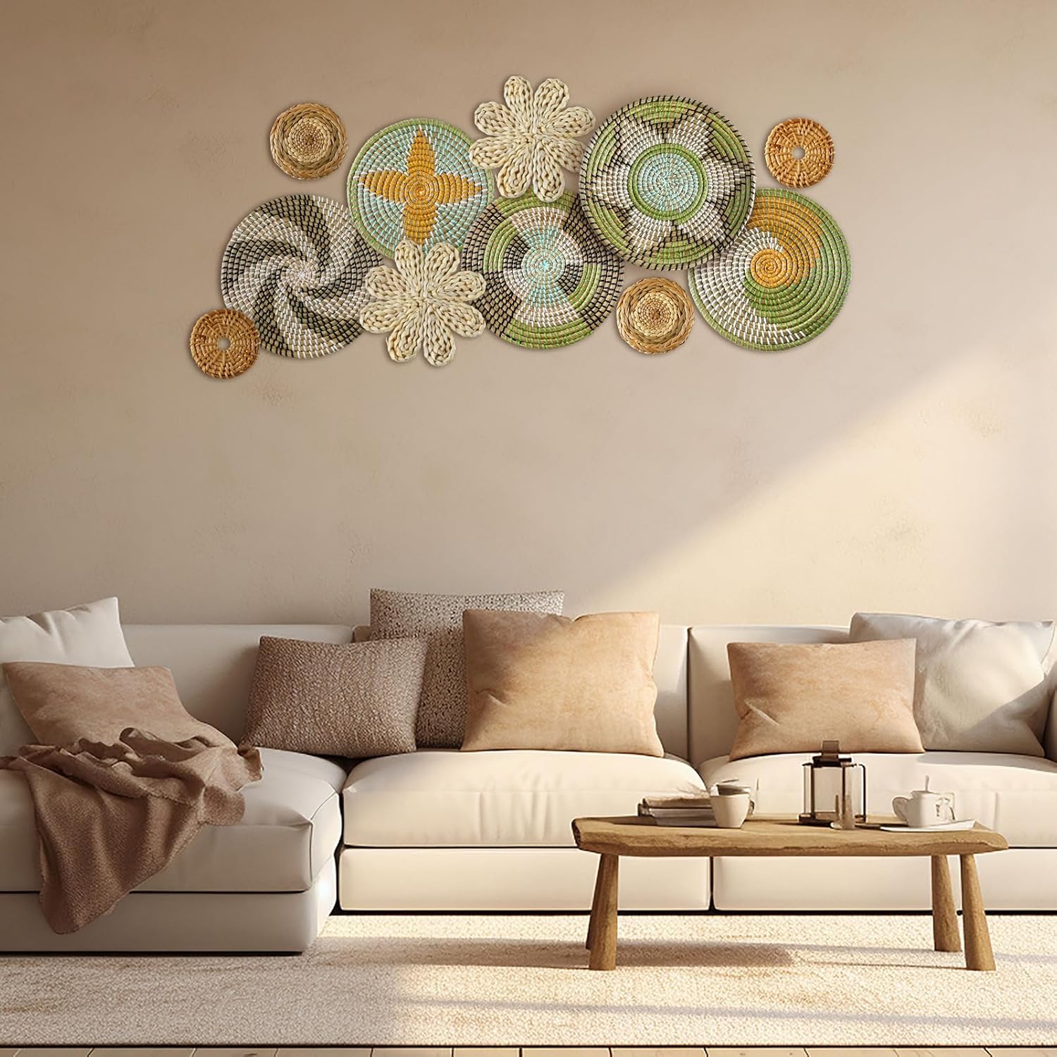 Tatuo 11 Pcs Boho Wall Basket Decor Decorative Bulrush Woven Basket Wall Decor Art Round Farmhouse Hanging Baskets for Kitchen Rustic Home Summer Decorations, Multi Sizes(Stylish)