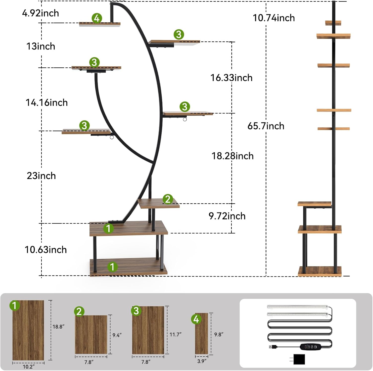 • 【Plant Stand with Grow Lights】 The plant stands features full-spectrum LED, mimicking natural sunlight. Adjust 10 brightness levels & 3 timing & 3 color temperature(3000K/4500K/6000K) provide the optimal light for different stage of plant growth. You can place this plant shelf indoors anywhere. No need to frequently move plants outdoors to absorb light. We are equipped with cable ties to avoid cluttered plant grow light wires.