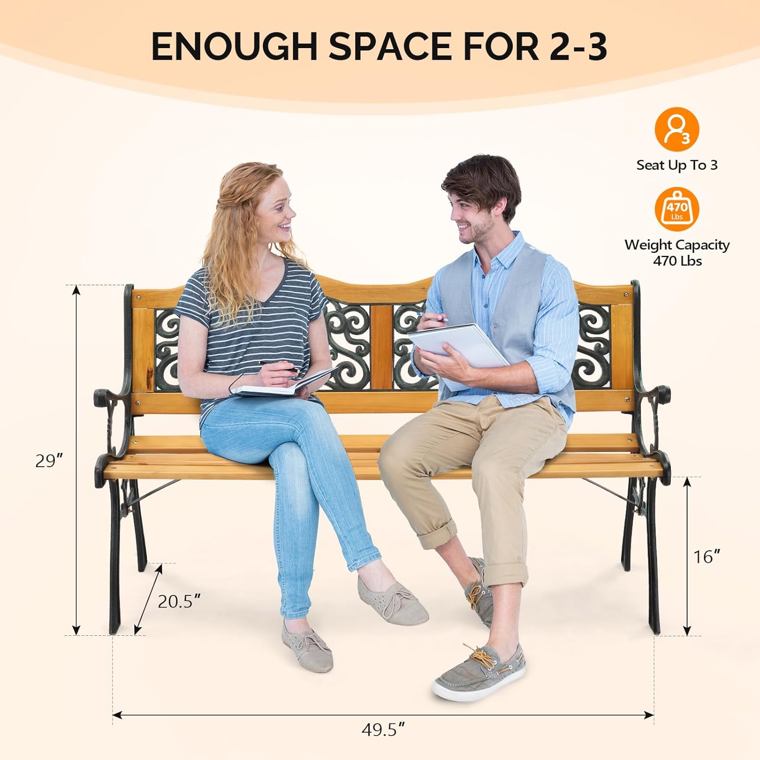 • Large Bearing Capacities: The small front porch bench boasts robust support, accommodating 2-3 people comfortably with a weight capacity of 470 lbs