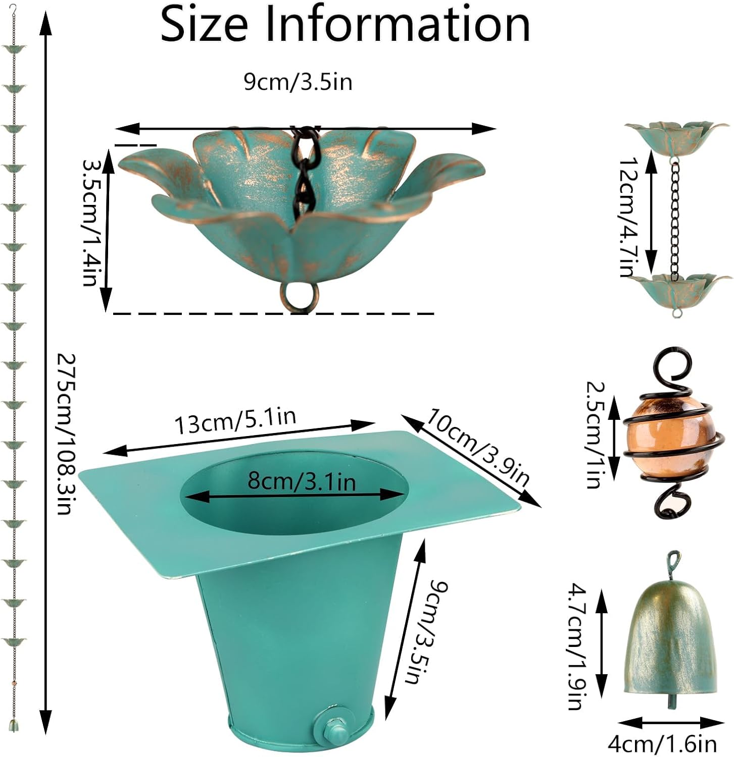 • High Quality Material:The rain chain is made of durable iron material to ensure stability and durability in all weather conditions. Whether it's direct sunlight or rain, this rain chain will stand up to the elements and will not fade or break over time.