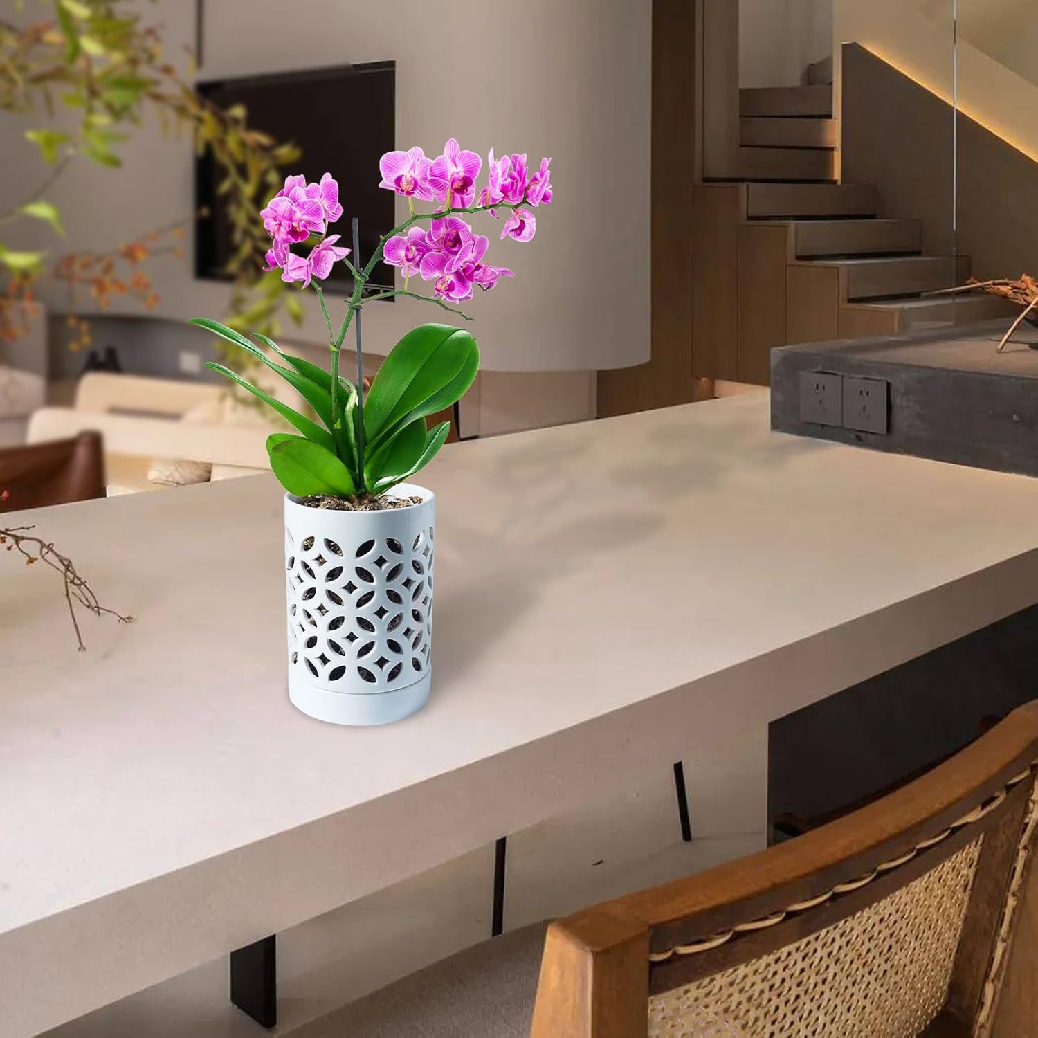 Orchid Pot with Holes & Saucers, Ceramic Pots for Repotting, Breathable Slotted Orchid Pots Flower Plant Nursery Pot White 4 Inch