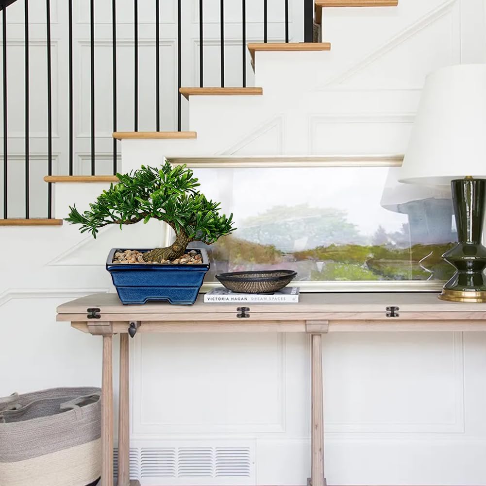 Artificial Bonsai Tree Faux Plants Indoor Small Fake Plants Decor with Blue Ceramic Pots for Home Table Office Desk Bathroom Shelf Bedroom Living Room Farmhouse Decorations