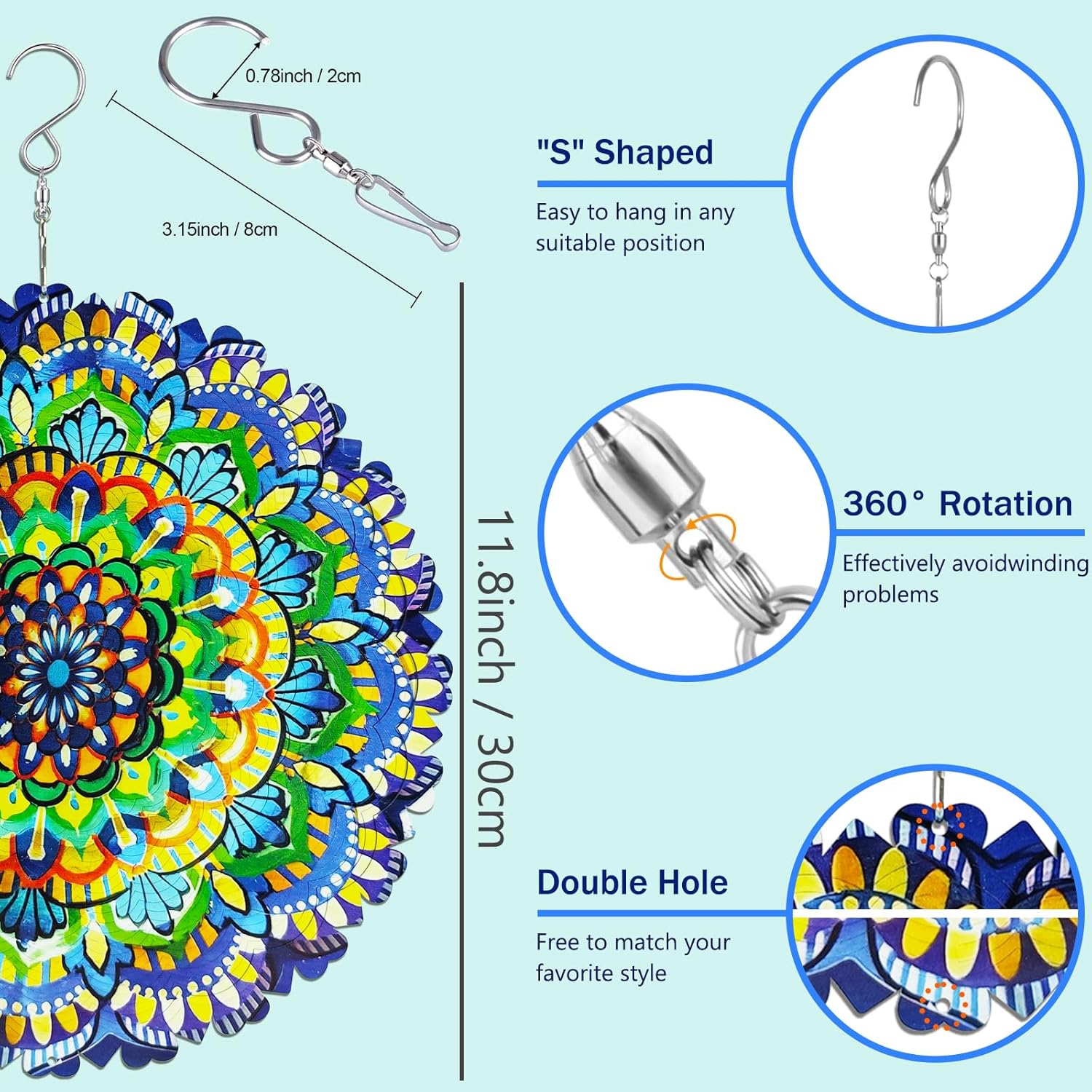 • Easy to Hang and Versatile:This garden wind spinner comes with a swivel hanging hook, making it easy to set up and adjust for the perfect spin. Its lightweight yet sturdy design ensures smooth rotation, and it’s versatile enough to be displayed in a variety of settings, from your garden to your balcony, porch, or even indoors.