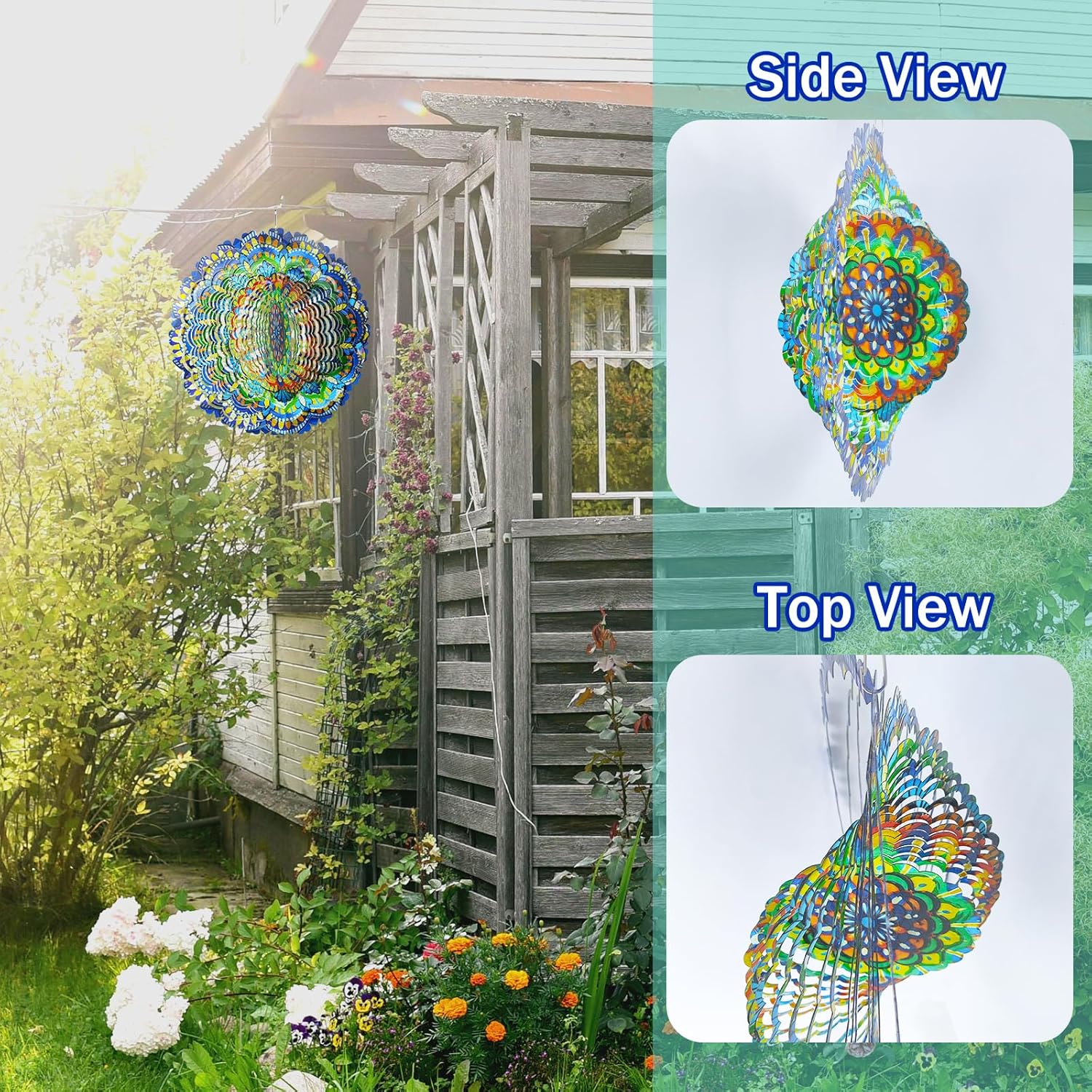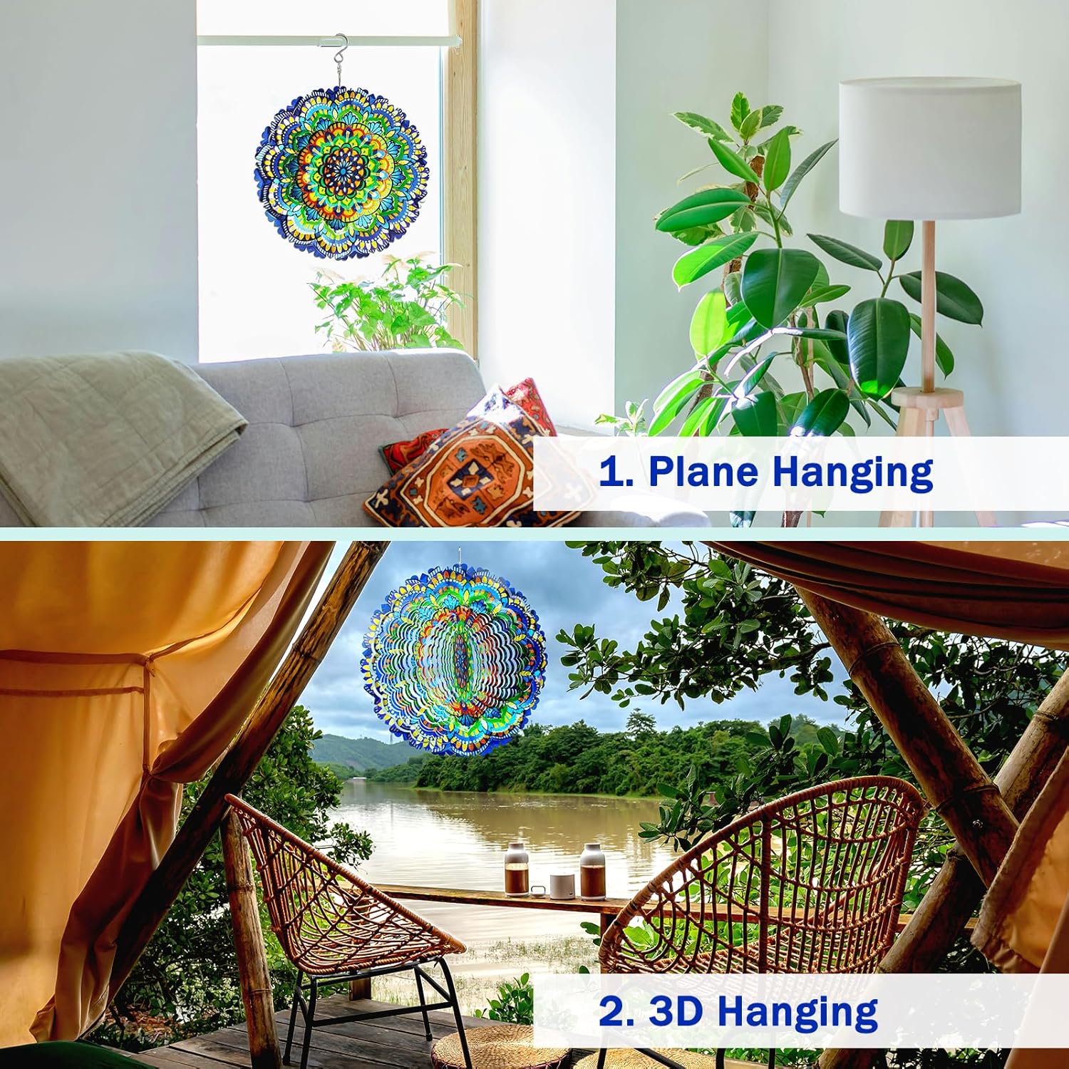 • Mesmerizing 3D Visual Effects:Watch as the wind spinner catches the breeze and transforms into a mesmerizing 3D display. The floral patterns create dazzling, holographic-like effects, adding a touch of magic to your garden or outdoor living area, whether in sunlight or under evening lights.