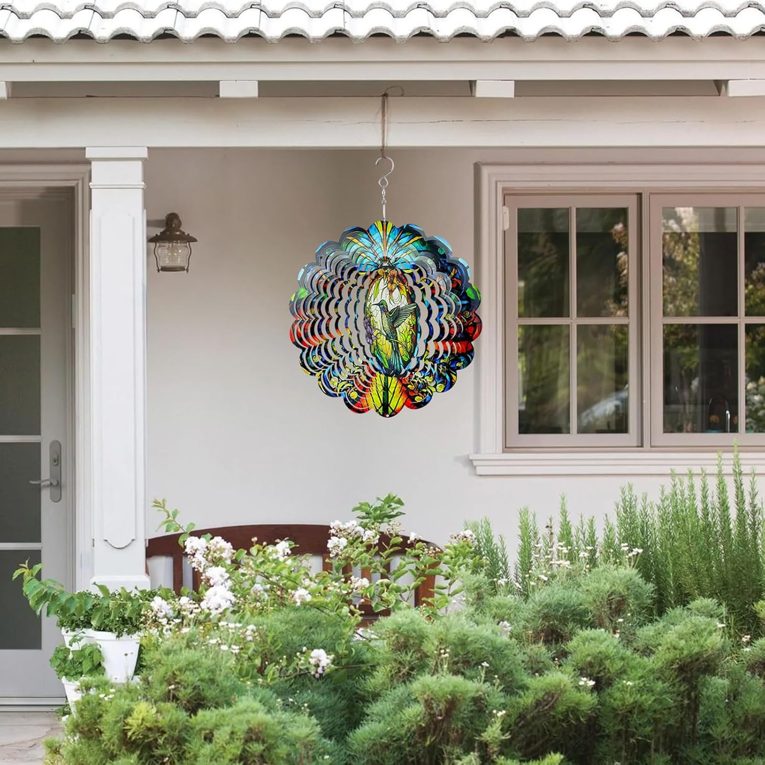Wind Spinners Hummingbird Arts12 inch 3D Stainless Steel Laser Cut Metal Art Geometric Pattern Wind Sculpture Hanging for Yard Garden Decorations Gifts Indoor Outdoor