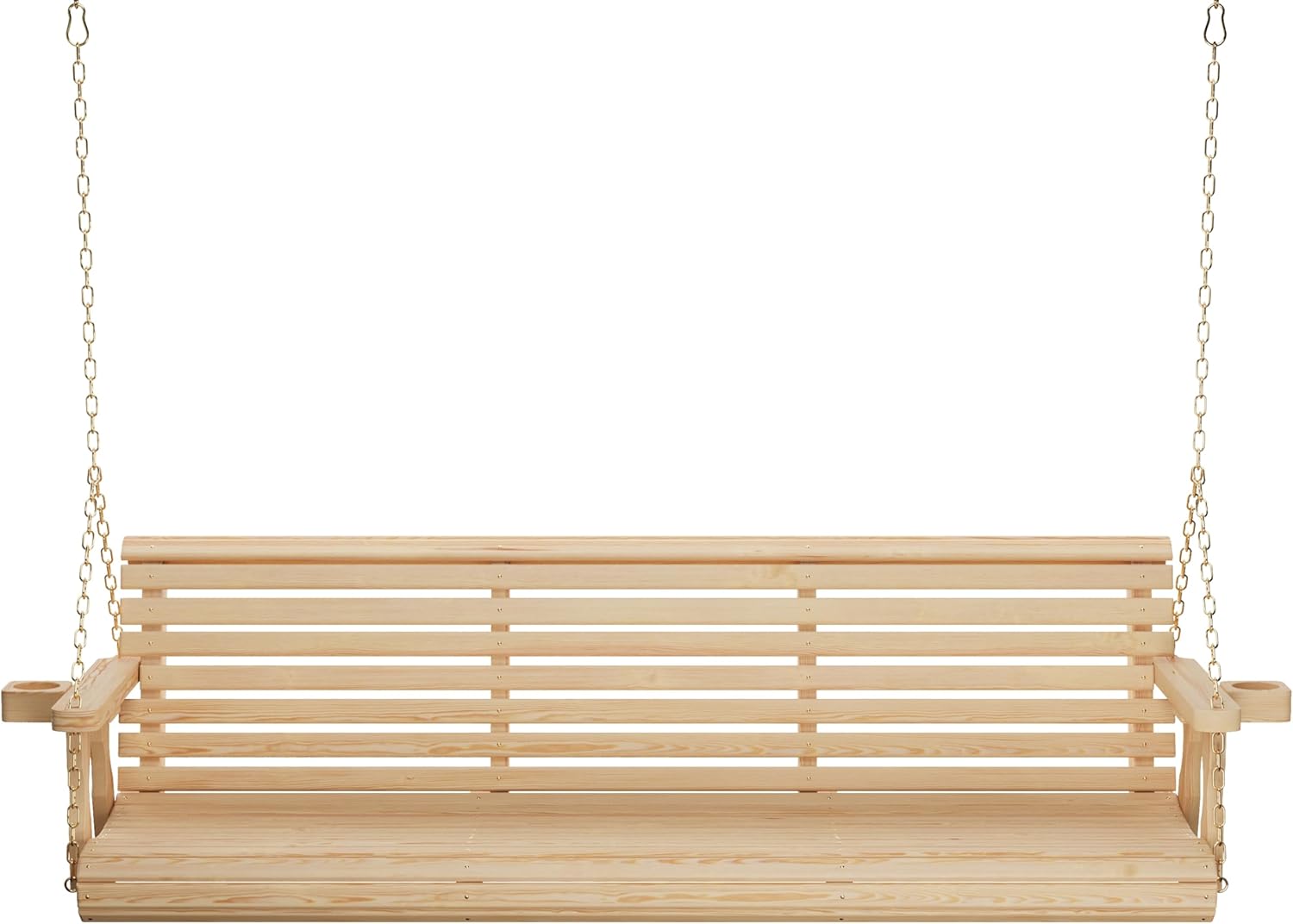 Amish Casual 6 Foot Roll Back Porch Swing with Cup Holders in Unfinished - Amish Made in The USA from Treated Pine Heavy Duty 700 Lb. Weight Capacity