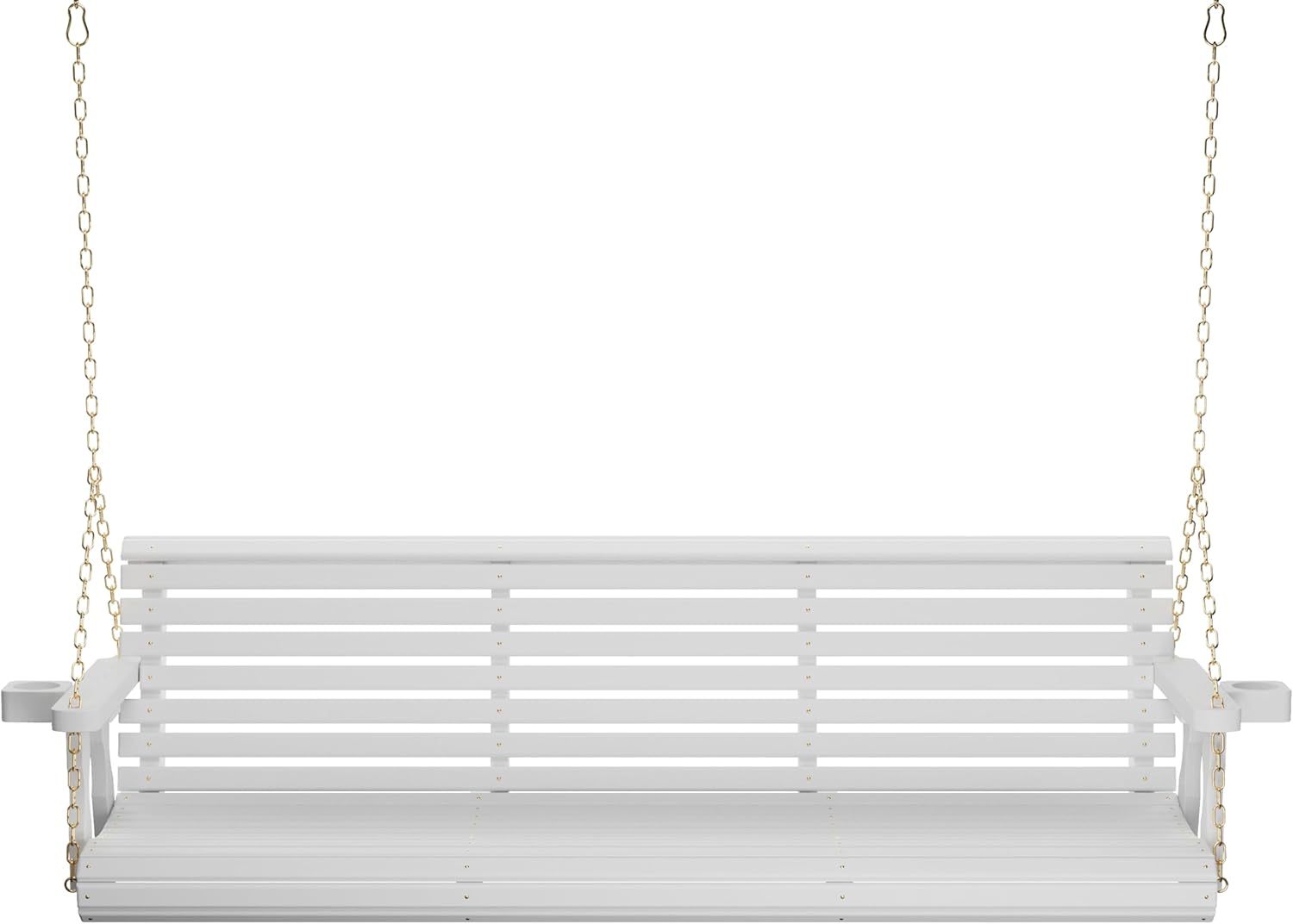 Amish Casual 6 Foot Roll Back Porch Swing with Cup Holders in Semi-Solid White Stain - Amish Made in The USA from Treated Pine Heavy Duty 700 Lb. Weight Capacity