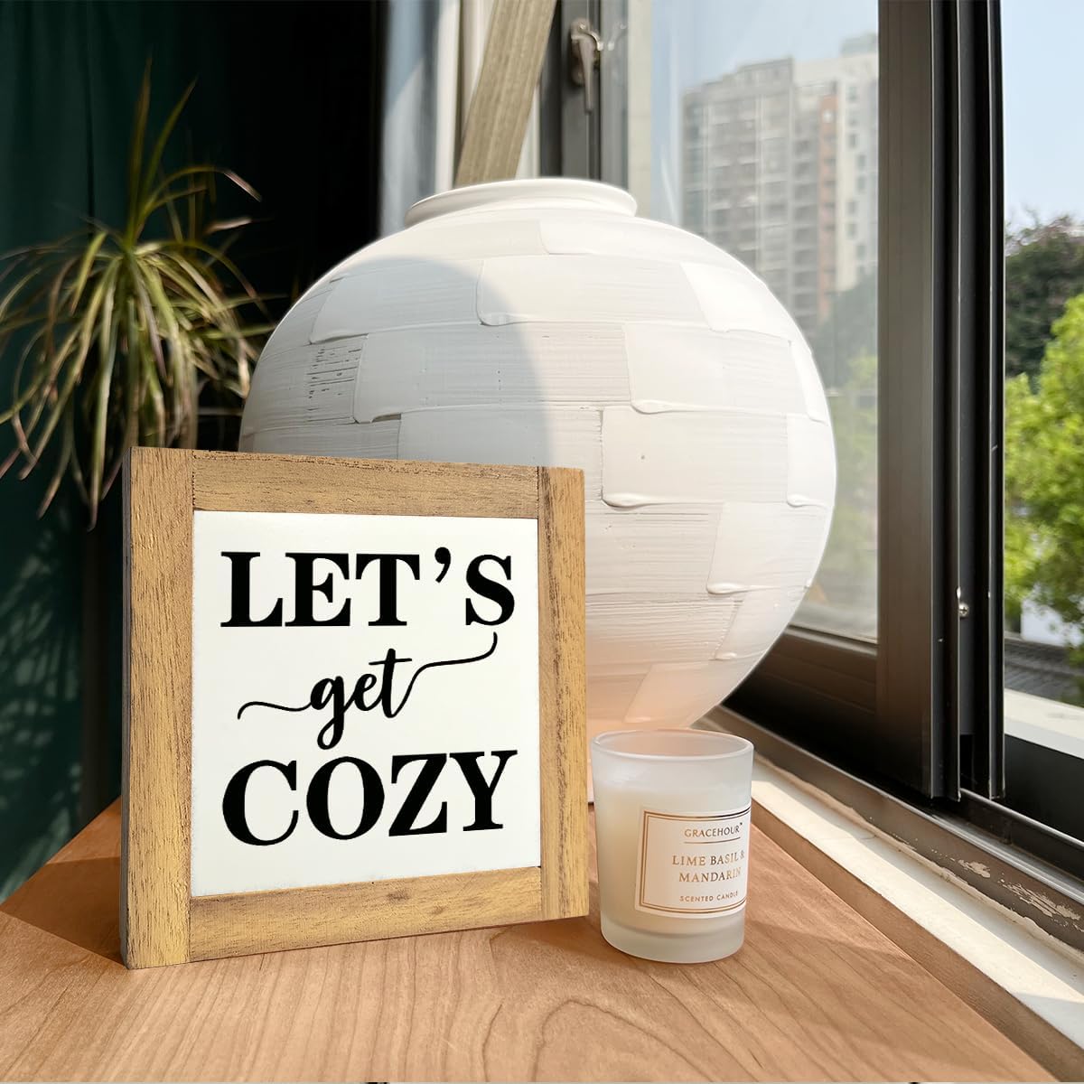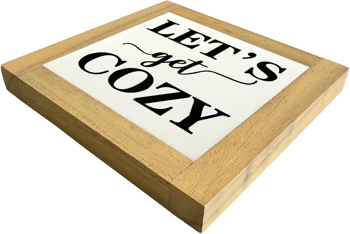 Inspirational Wood Signs, Box Wood Plaques Desk Décor, Farmhouse Home Decor Sign for Shelf, Family Table Decor for Kitchen Bedroom Dining Room, Living Room Decor, Housewarming Gift, Let's Get Cozy D
