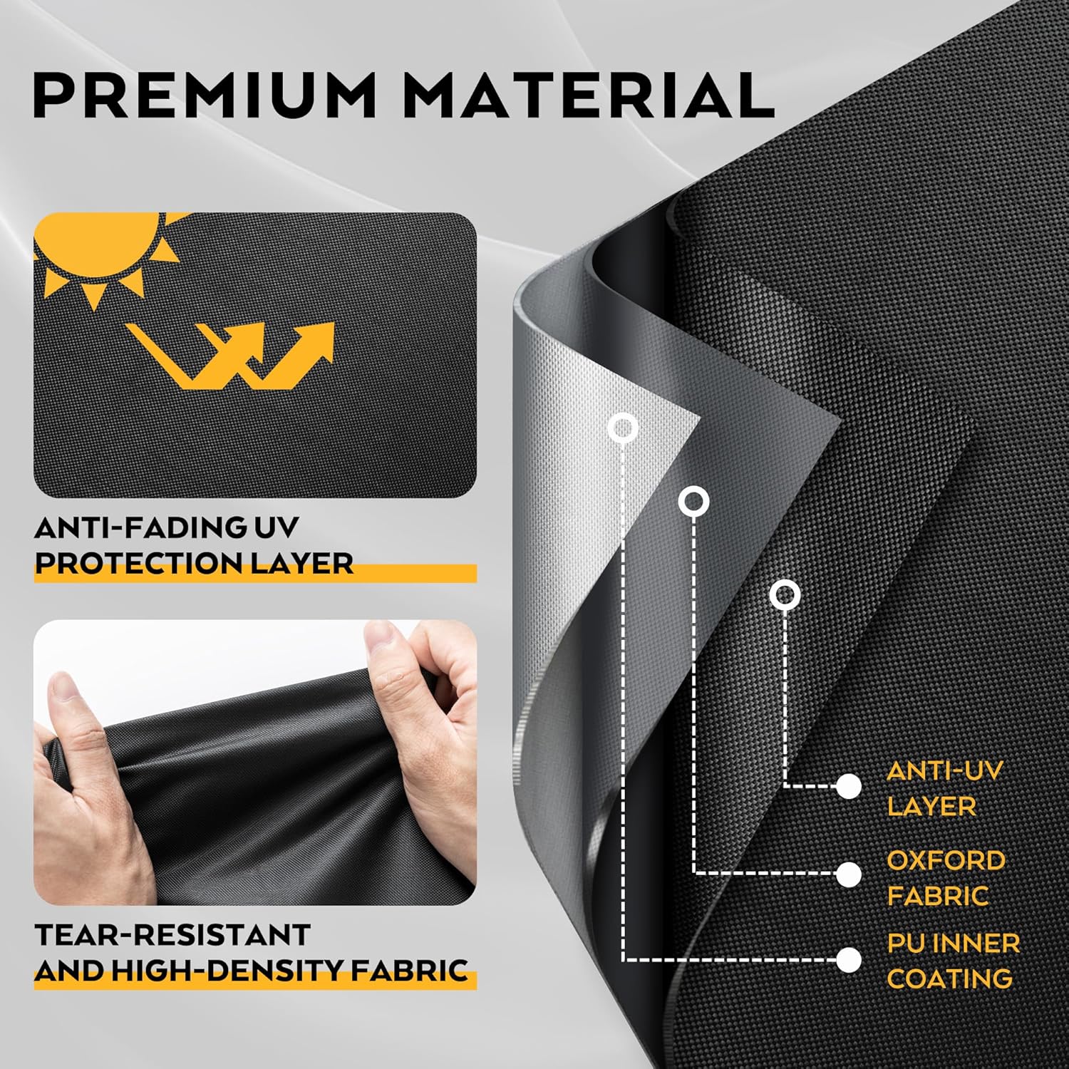 • ANTI-TEAR MATERIAL – Designed to be long lasting, this outdoor table cover is made of high-density 420D oxford fabric with reinforced stitching, which is lightweight but durable materials that can withstand harsh weather conditions and resist tearing, fading, and other types of damage