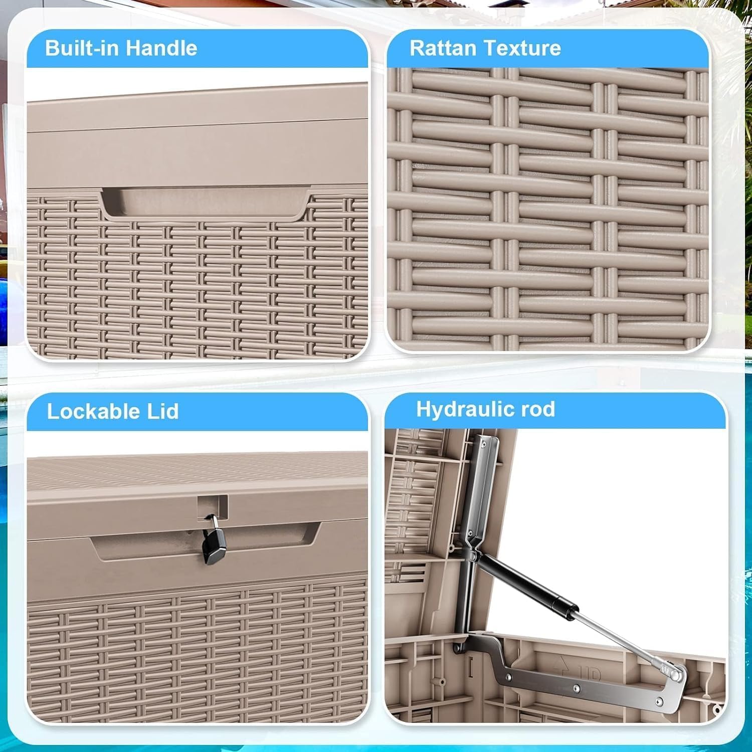 • SAFETY & LOCKABLE FEATURE - Equipped with a hydraulic lid support for smooth and safe opening and closing, preventing accidental pinching. The integrated lockable mechanism adds an extra layer of security for your outdoor valuables.