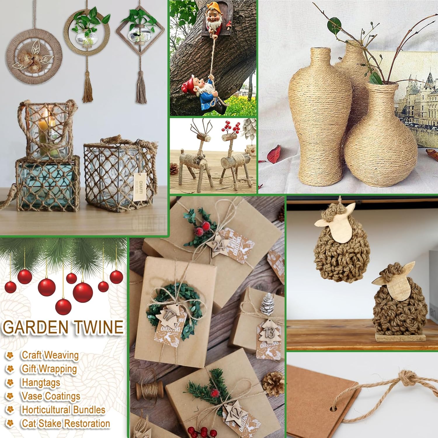 • AESTHETICS - The 6mm thick jute twine is often used for repairing cat scratching posts, making beautiful gift wrappings, gift card strings, photo strings, art crafts and DIY projects. It is suitable for weddings, birthdays, baby showers and more, creating a handmade rural style decoration. Natural jute twine is the perfect choice for packaging materials on Thanksgiving, Christmas and other holidays.