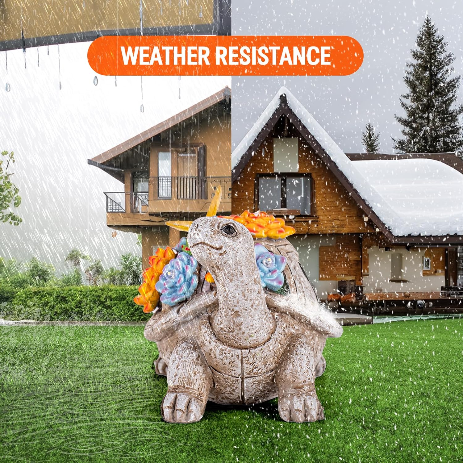 Solar Garden Outdoor Statues with Succulent and 7 LED Lights - Lawn Decor Tortoise Statue for Patio, Balcony, Yard Ornament - Unique Housewarming Gifts (Grey Turtle)