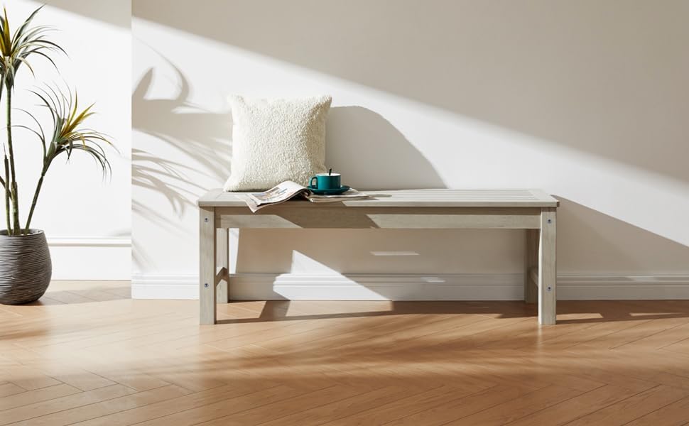 • Easy to Assemble- The most simplified installation process, you only need to screw 4 identical screws into the pre-drilled holes. The park backless bench is heavy. It is recommended that two people install it together.