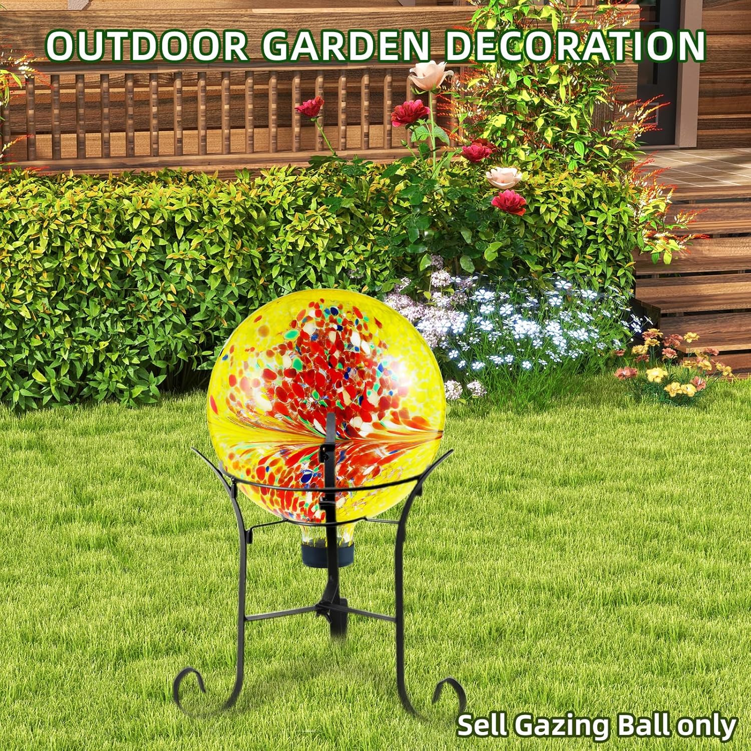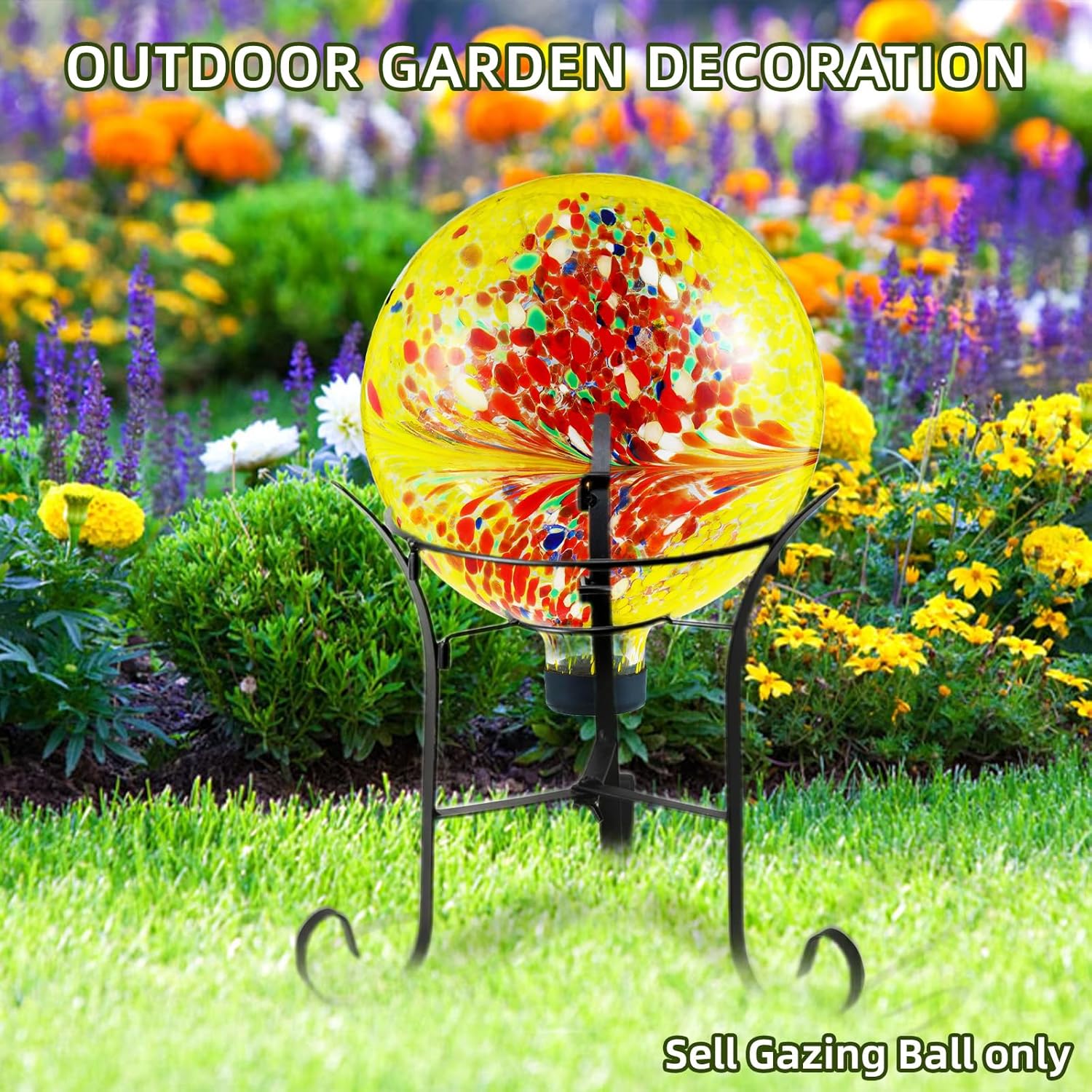 • VERSATILE & STAND-COMPATIBLE. Measuring 10 inches in diameter and 11.5 inches tall, this decorative gazing ball is designed to fit most standard stands (stand not included). A protective rubber cap at the base prevents damage from bumps and vibrations, making it easy to display securely in your garden