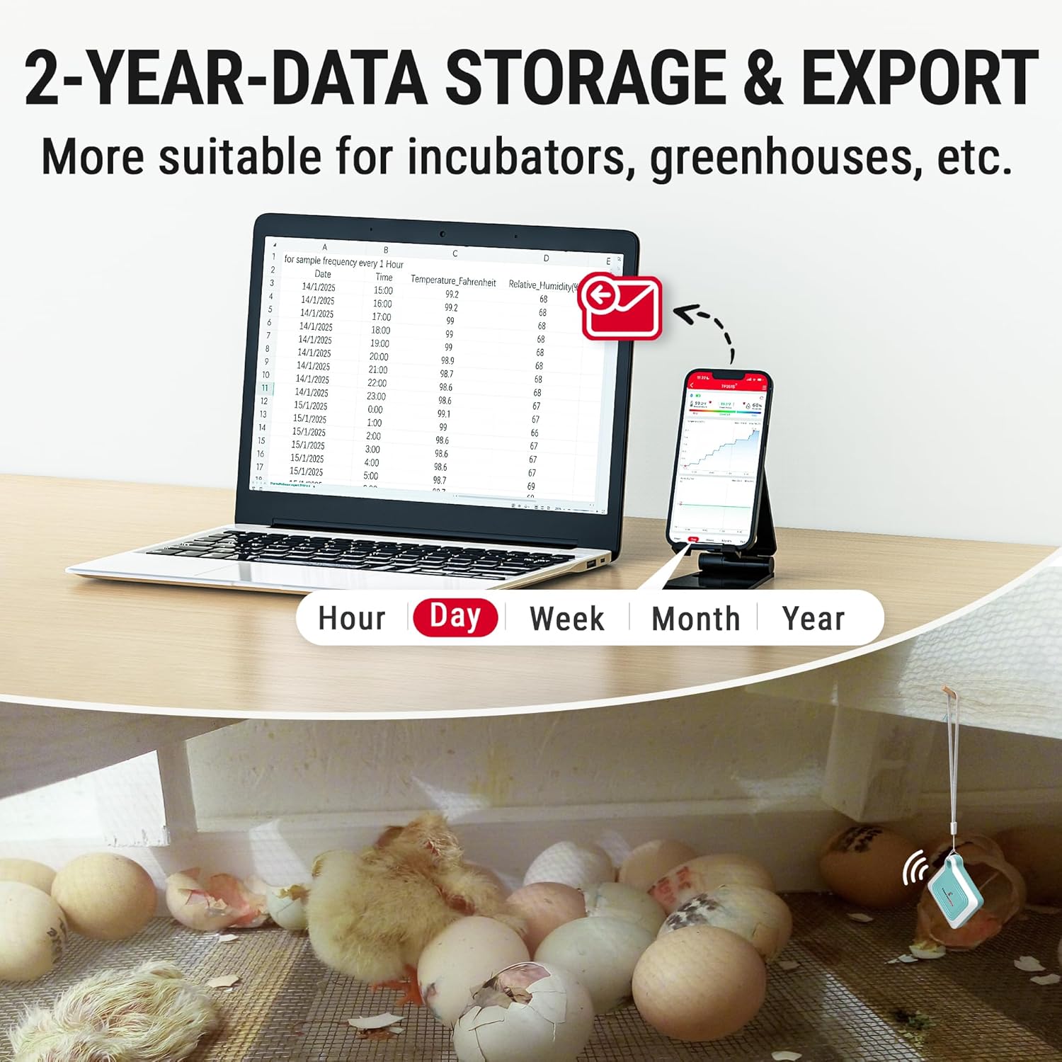 • 【2-Year Data Storage & Export】Store up to 2 years of data and easily export it for analysis, our greenhouse accessories thermometer is ideal for incubators, greenhouses, and other applications requiring long-term environmental monitoring