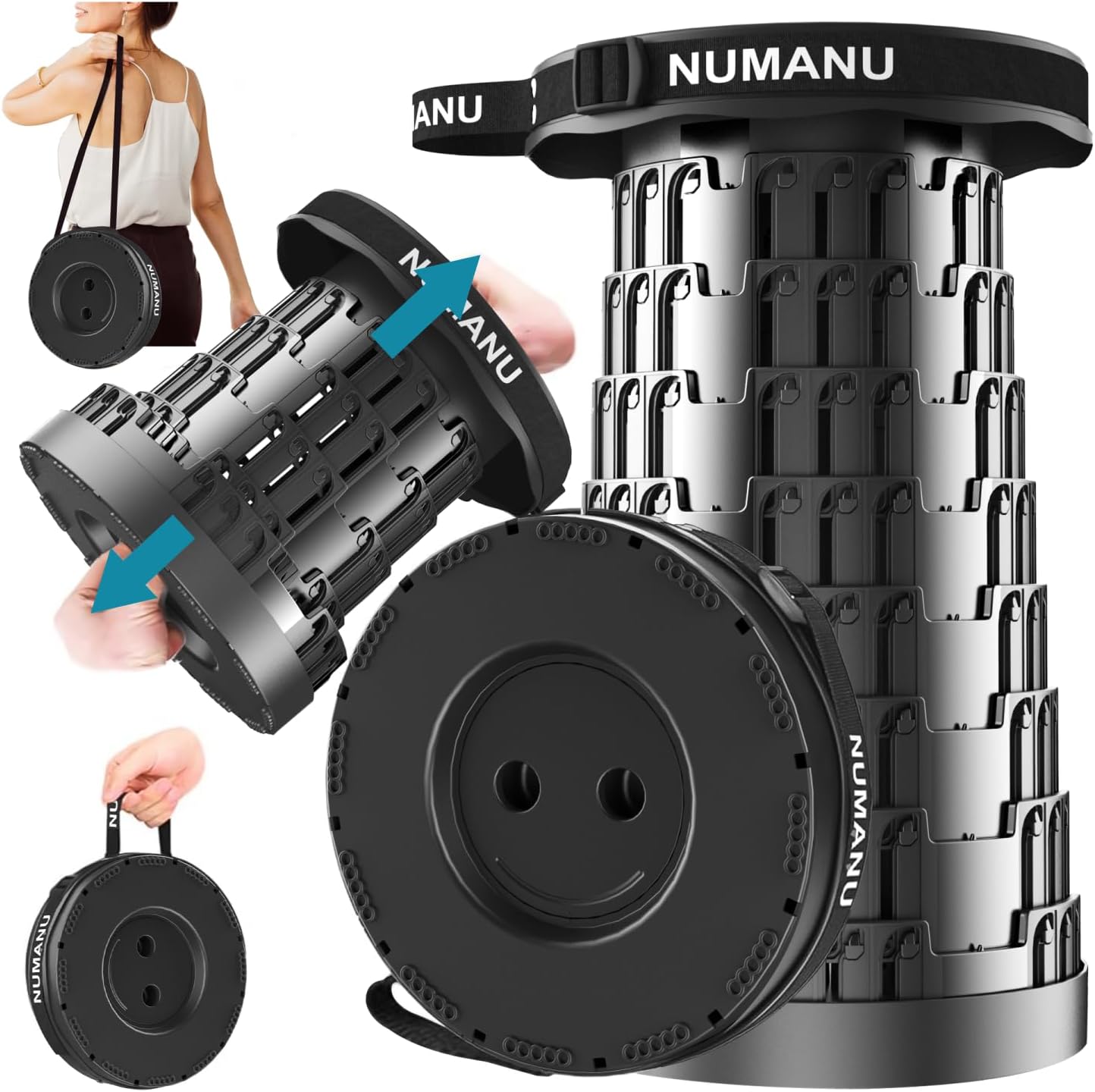 • 🔥【ENDLESS OPTIONS】NUMANU Portable Telescoping Collapsible Stool has many use cases such as: Camping, Hiking, Waiting in Line, Live Concert Events, Plumbing, Construction, DIY/Fixing, Fishing, Gardening, Resting, Travel, Commute, Bus, Train, Subway and More...