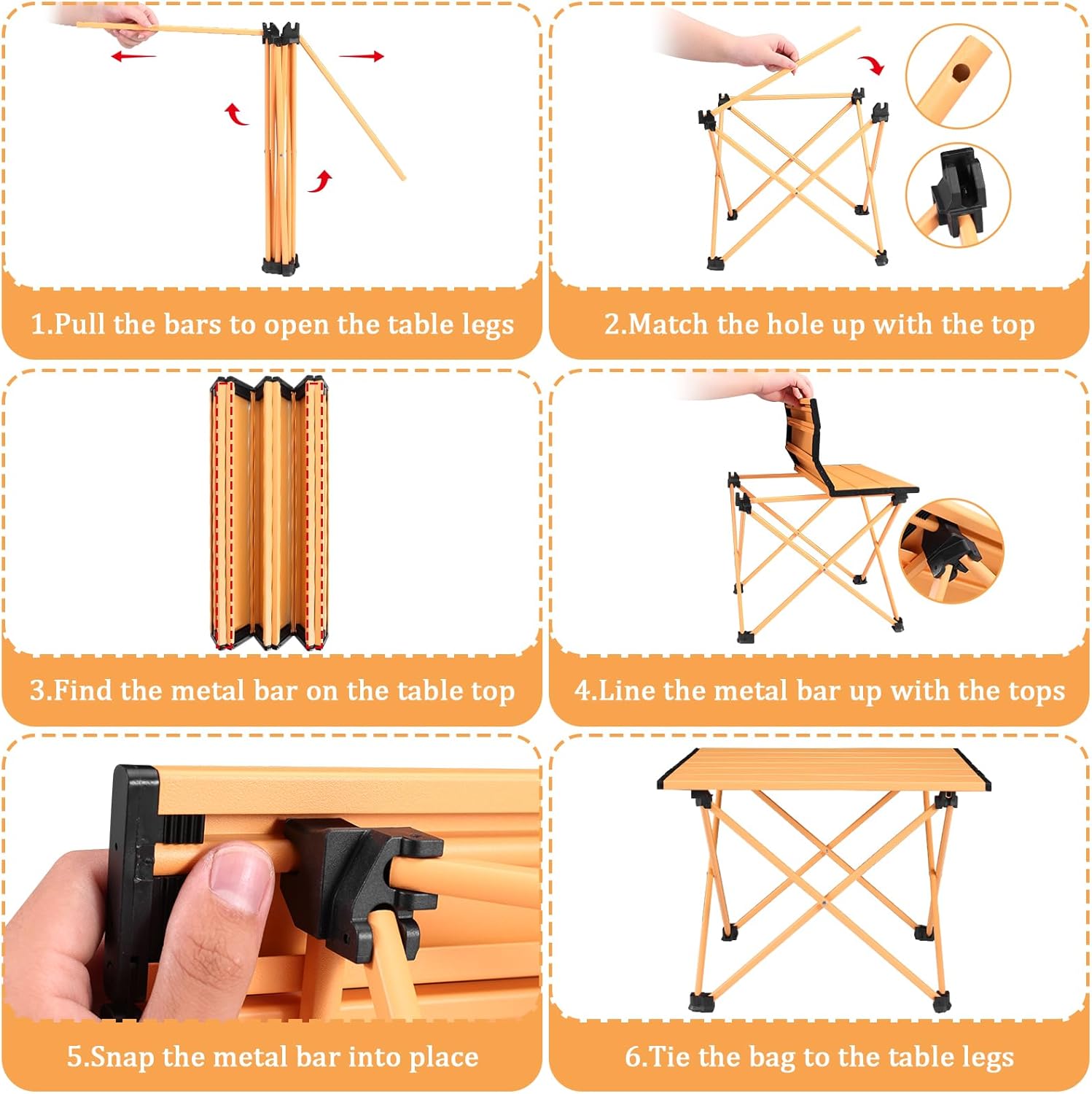 • EASY TO CLEAN - Unlike wooden or cloth tabletops, our camping table is made of aluminum alloy, making it easy to wipe and clean. In addition, it prevents the absorption of liquids, such as water and oil stains. So, you never have to worry about cleaning after a picnic.