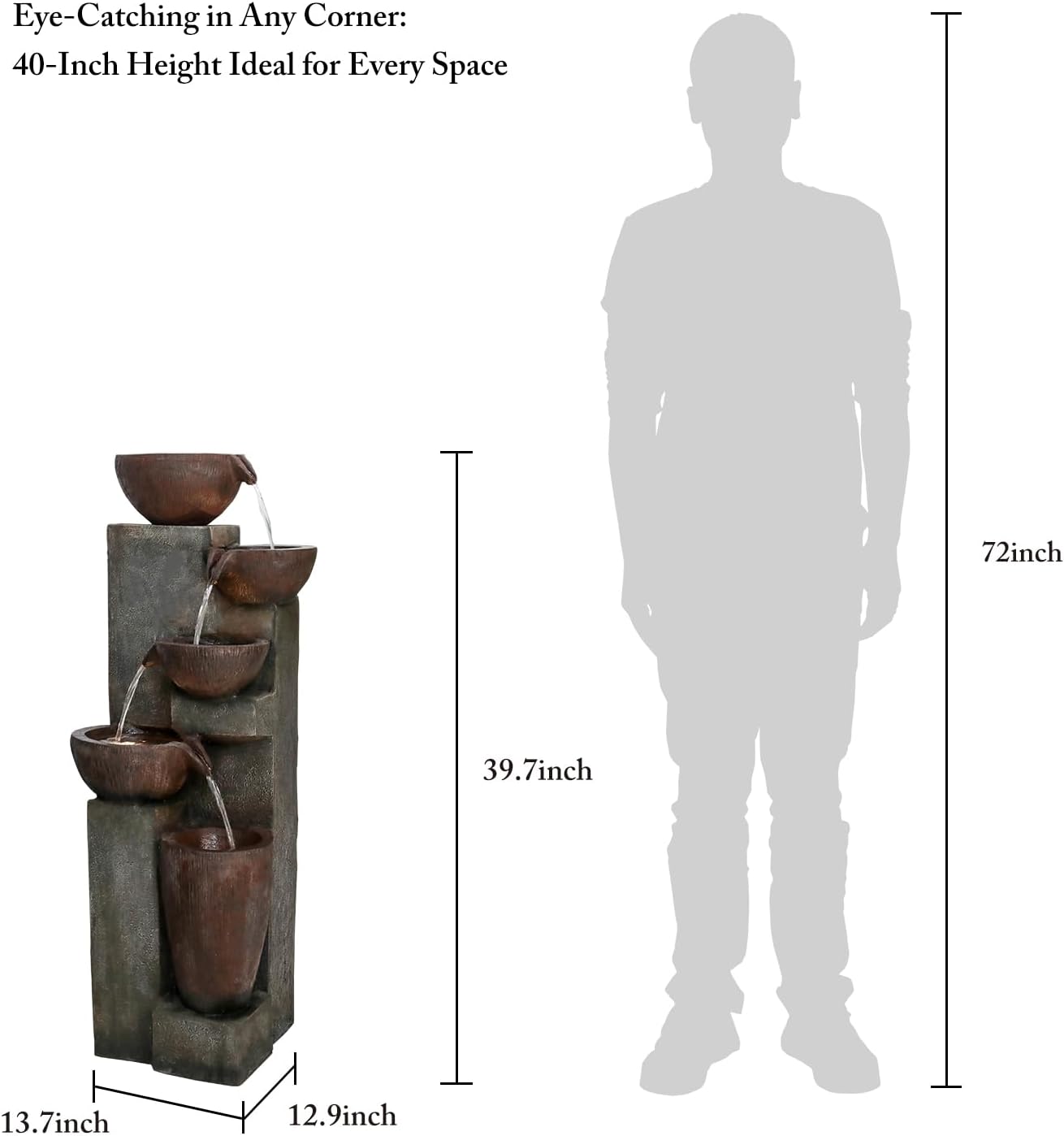 Naturefalls 39.7in.Modern Outdoor Fountain -5-Tier Resin Water Feature, Indoor Outdoor Garden Waterfall Fountain with Contemporary Design&LED Lights for Patio, Yard, Deck, House, Office, Home Decor