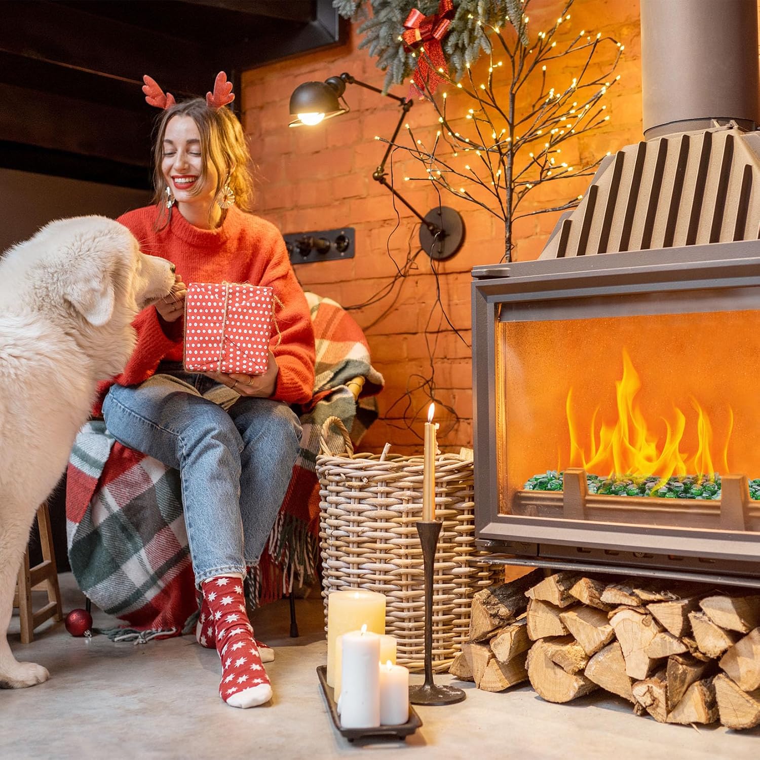Fire Pit Glass Rocks Square, Fire Glass Cubes, Tempered Firepit Stones for Fireplace, Firepit Table Indoor or Outdoor, Replacing Traditional Burning Wood 10 pounds, Green Reflective