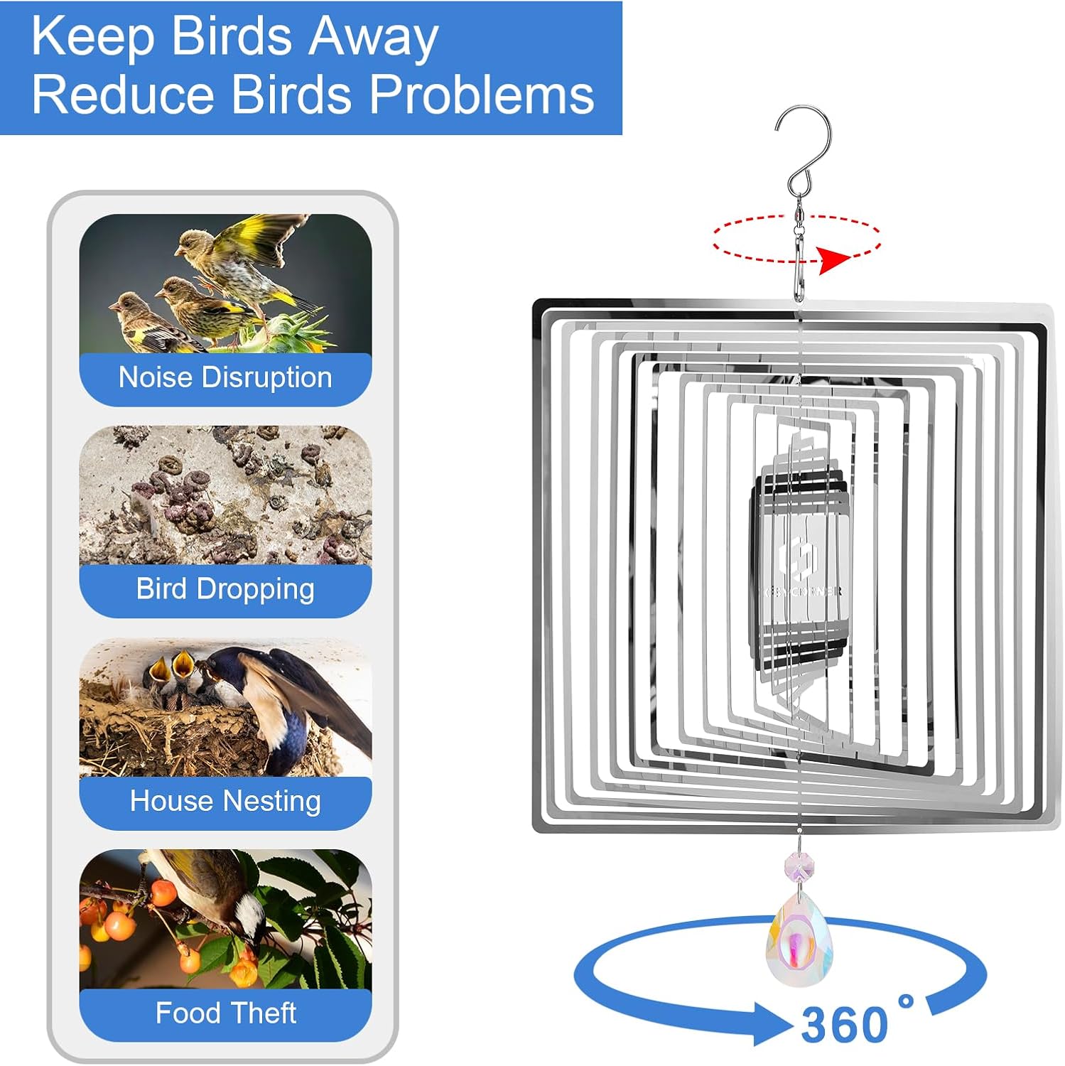 Wind Spinners Outdoor – Colorful Garden Wind Spinners & Yard Decorations, Outside Wind Chimes for Garden Decor, Birthday Gifts for Women (Square-Silver, 11.9 inch)