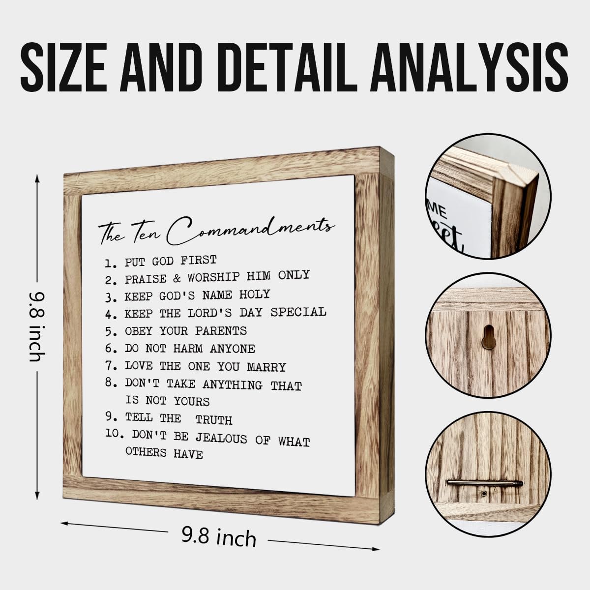 The Ten Commandments Sign, Farmhouse Home Decor, Living Room Decor, Kids Bedroom Decoration, Christian Desk Signs, Commandments for Kids, Encouragement Gift, Wooden Plaques Box Signs, 9.8 * 9.8 Inch