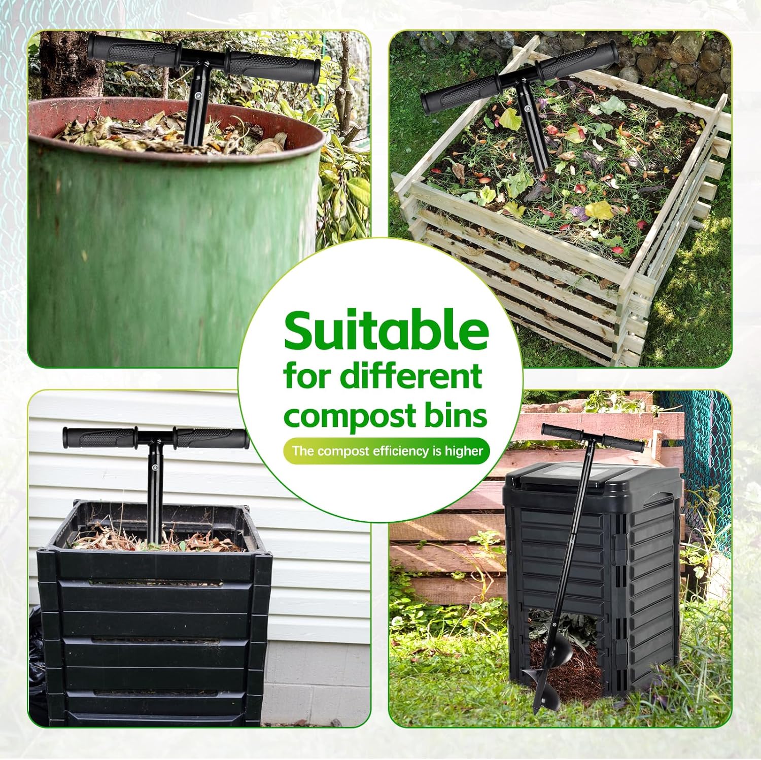 • Effortless to Use: No complicated setup is required. Simply insert the agitator into the compost bin and start stirring. It simplifies composting at home, providing an easy way to create organic fertilizer for your plants.