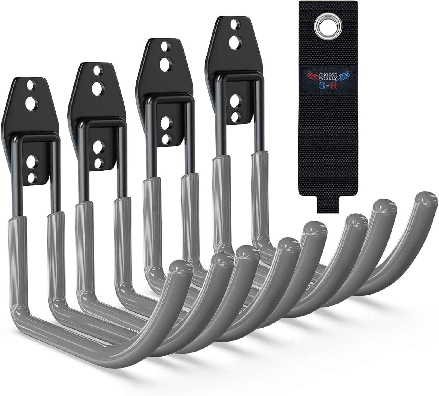 3-H Large Garden Hose Holder Wall Mount 4 Pack,Solid Steel Hose Hanger,Water Hose Holders for Outside,Perfect for Hanging Outdoor Air Hose,Ropes,Pipes,Garden Tools,Ladders,Bikes,Bulk Items(Gray)
