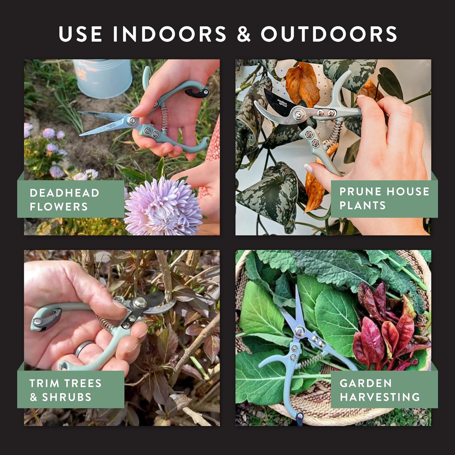 • Versatile Garden Care Set: This Modern Sprout set includes both precision pruning shears & durable garden pruners to cover a wide range of gardening tasks; Whether you’re using shears to trim herbs, snipping flowers, maintaining shrubs, or use heavy duty pruners for gardening to prune branches up to ½" diameter, this combo ensures clean, healthy cuts every time; Perfect for both indoor & outdoor use, it’s an essential addition to your garden accessories and garden essentials
