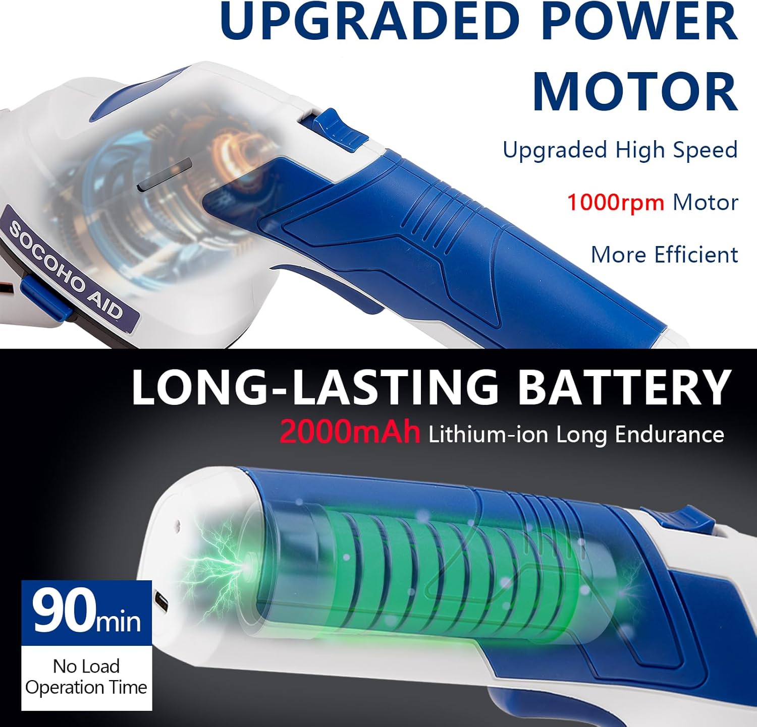 • Upgraded Power Motor: SOCOHO AID cordless bush trimmer upgraded with powerful motor the 2 in 1 design allows for quick and easy switching from trimming to mowing. even if you are a beginner, this handheld cordless lawn mower will meet your mowing needs