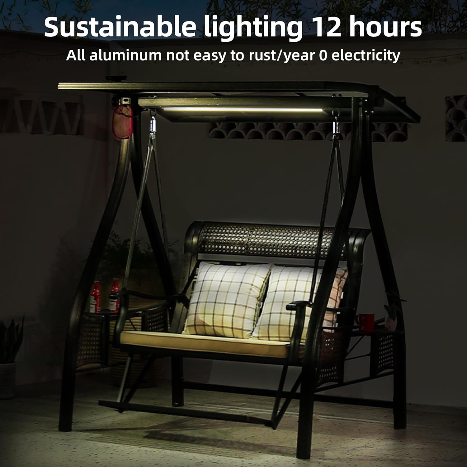 • Adjustable Aluminum Alloy Canopy: Upgraded designed with an adjustable hardtop aluminum alloy board canopy, which is built to last and is not easy to deform. The all-weather hardtop canopy protects against UV rays and rain. Porch swing with solar receiver, energy saving and environmental protection, more convenient