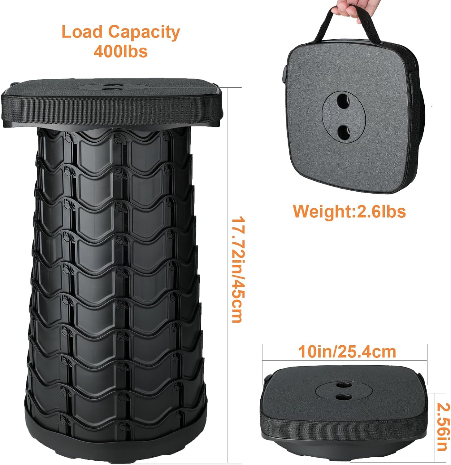 Boreeman Upgraded Collapsible Stool, Square Portable Stool, Lightweight Yet More Sturdy with Load Capacity 400lbs, Perfect for Camping Fishing Hiking BBQ (Square Black)