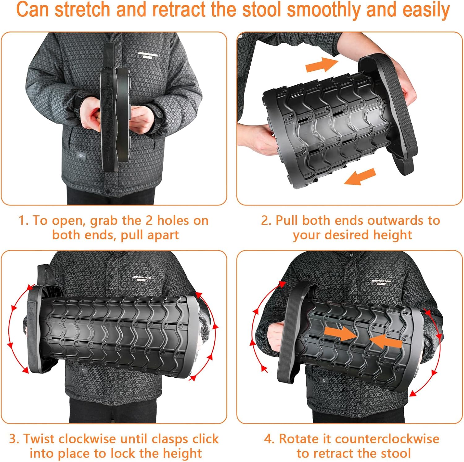 • STRETCH AND RETRACT SMOOTHLY AND EASILY: Benefiting from the fish scale design and our high precision production equipment, scales interlamellar spacing is kept 0.1mm. Make sure the stool’s stretch and retract smoothly and easily. You can open and close the stool in just seconds.