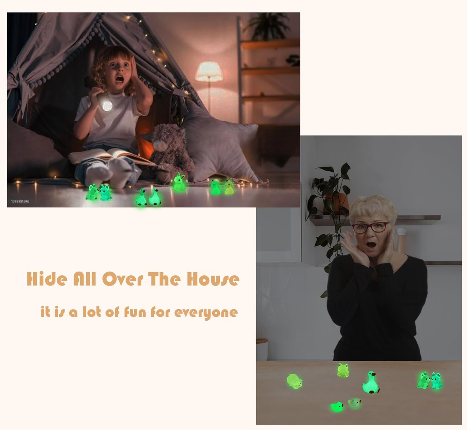 • Glow in the Dark Fun - Each mini resin animal is designed to glow in the dark, creating a magical effect in your garden or indoor displays. Simply expose them to sunlight or a bright light source, and watch them illuminate your space at night.