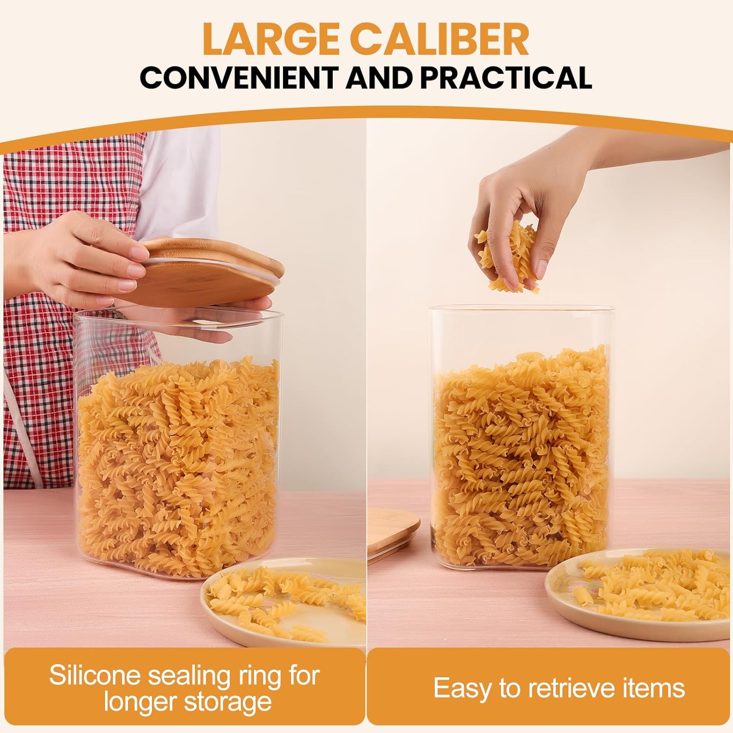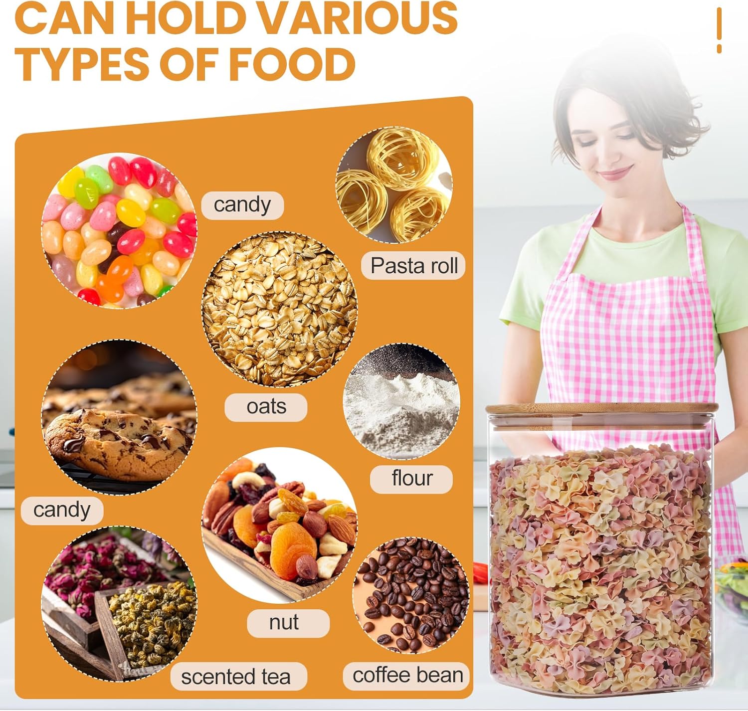 • Versatile Size and Set: This square glass jars is the perfect solution for storing a variety of items. From grains and pasta to nuts and spices, these jars offer ample space while maximizing shelf or cabinet space. Keep your kitchen neat and tidy while adding a touch of elegance
