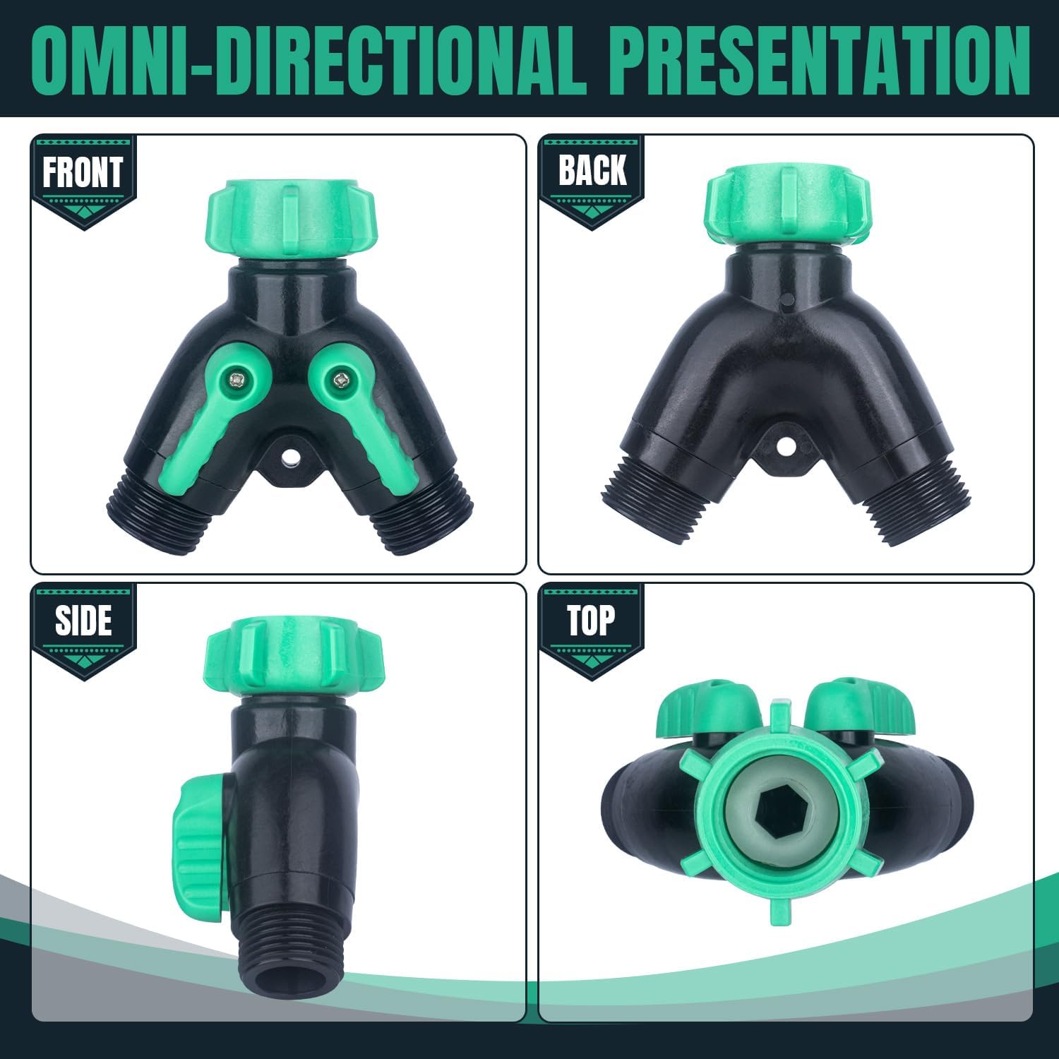 • 2-Way Hose Splitter: The garden hose Splitter has 2 connectors and 2 valves. After using the water Splitter, it can easily convert one faucet into two high flow water sources. Each distribution port has an independent valve controller that can adjust the water flow and enhance user convenience