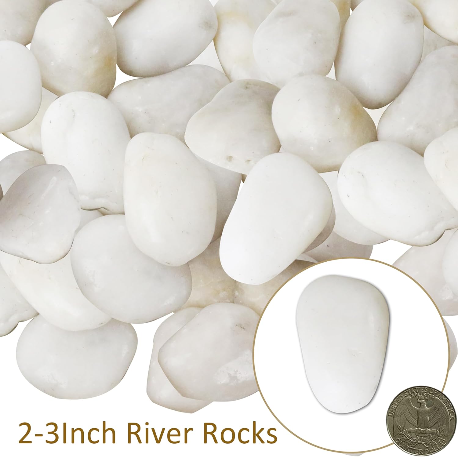 Sunnyglade 18 LBS White River Rocks, 2-3 Inch Natural Pebbles for Indoor Plants, High Polished Decorative Stones Vase Filler Fish Tank Aquariums Landscaping Garden Outdoor and Indoor DIY (18 Pounds)