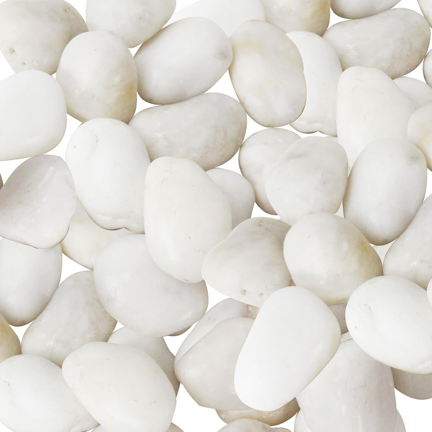 • 【5 LBS WHITE PEBBLES】- The diameter of each white river rock is approximately 2-3 inches. Composed of natural river rocks, the material will undergoes screening and extensive polishing to achieve rounded edges and corners. Following cleaning and waxing processes, it will be picked by the professional person to to remove the damaged defects, thereby ensuring the delivery of optimal products to consumers.