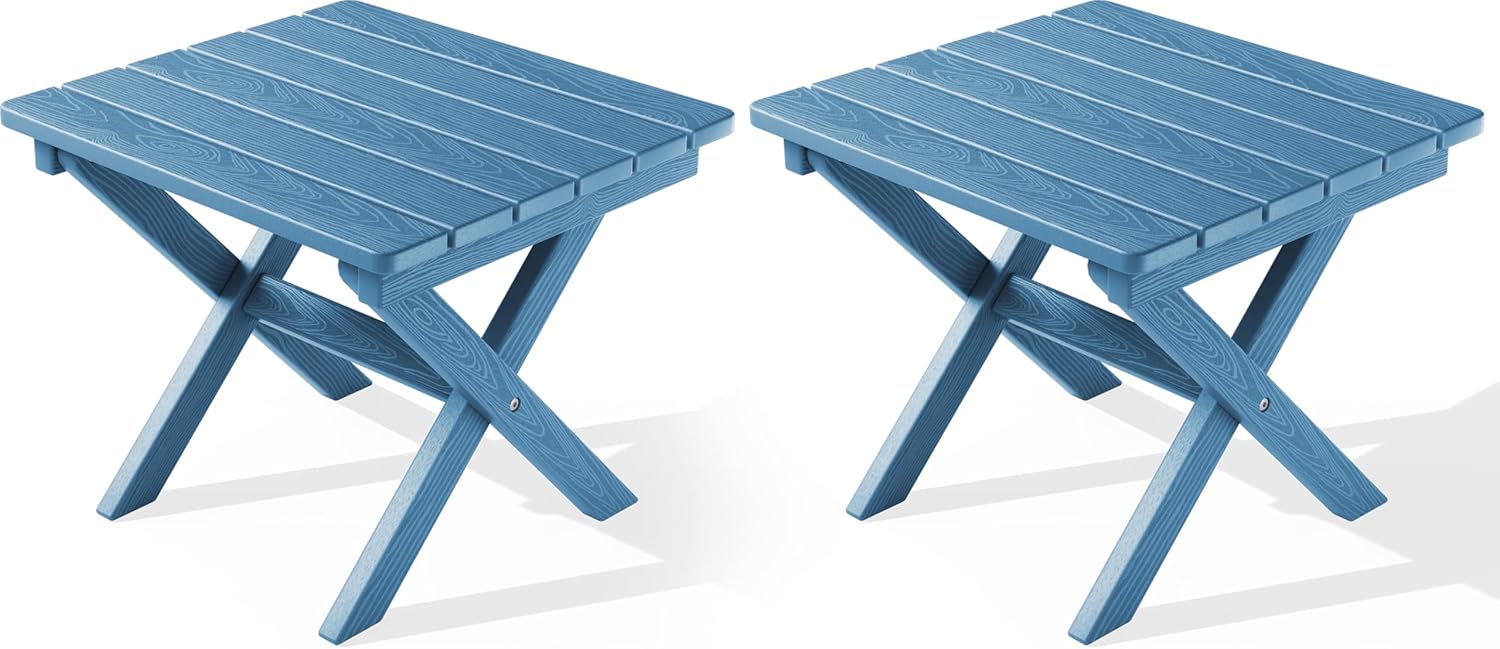 SERWALL Folding Outdoor Side Table Set of 2, Portable Adirondack Side Table, Navy