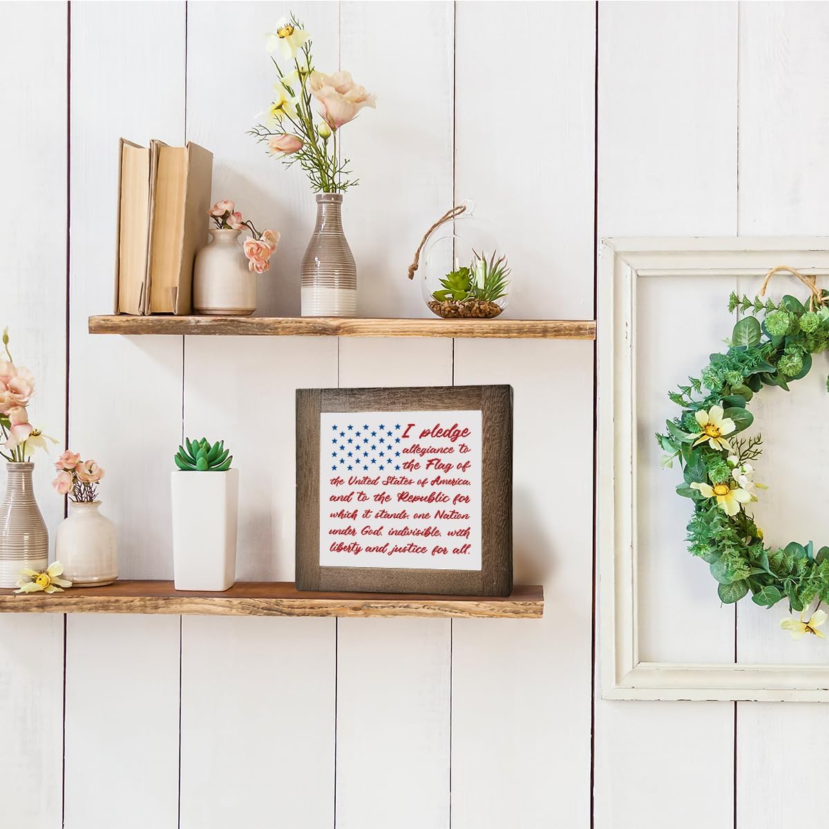 Patriotic Wood Plaque Sign, I Pledge Allegiance to the Flag of United States of America, Box Wood Plaques Desk Décor, American Flag Wooden Sign, 4th of July Decoration, Independence Day Decor B