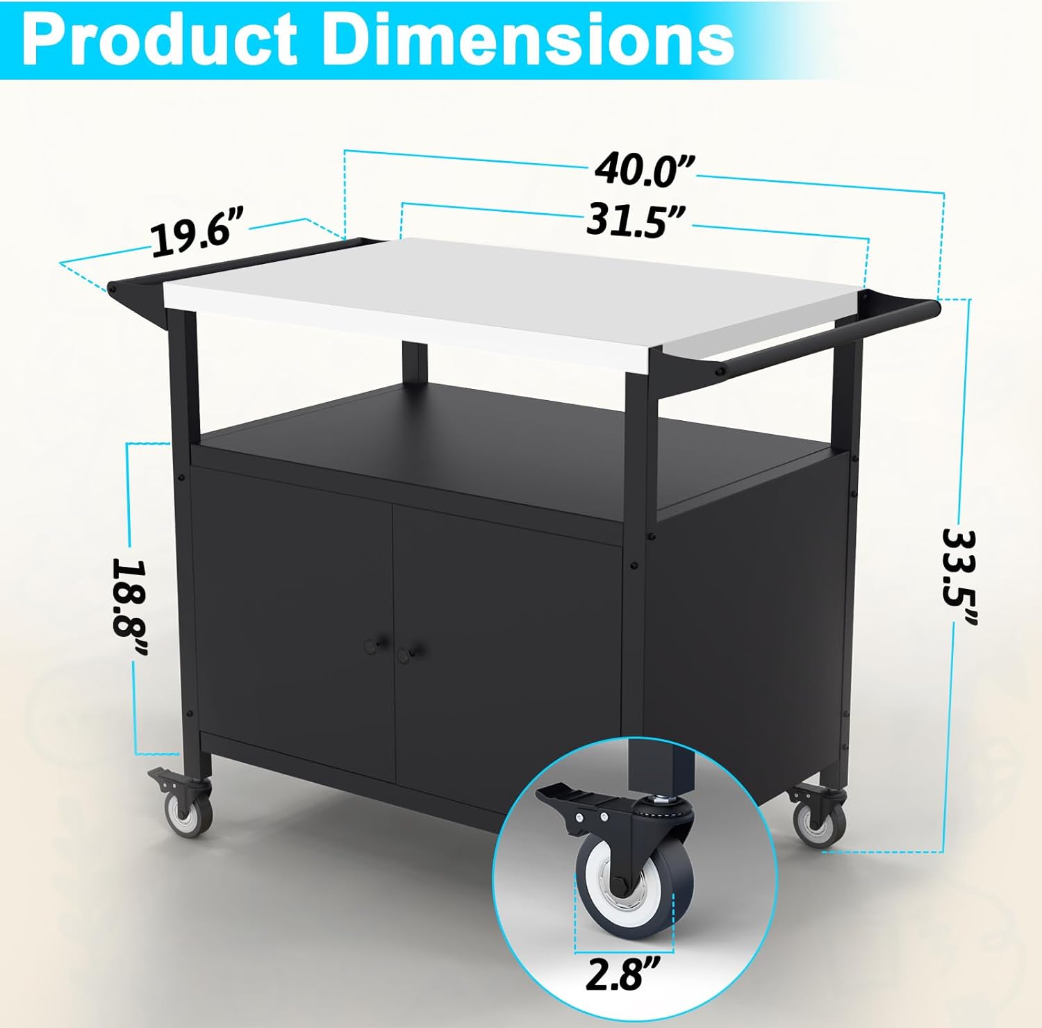 • Product Dimensions : 40"D x 19.6"W x 33.5"H