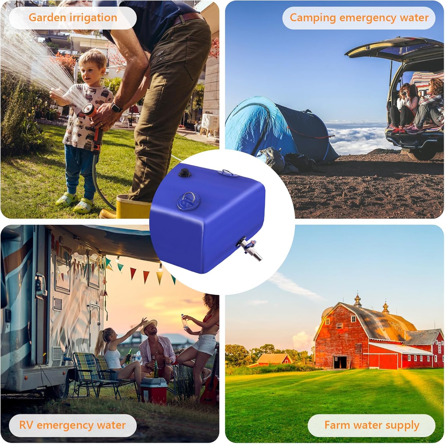 • POTABLE WATER STORAGE BLADDER: A portable water tank quickly fills with water using the bladder's 1.5-inch wide opening. Outlet valve 3/4 spout, stainless steel material is strong and durable. Portable water storage has a convenient outlet valve on/off switch for easy access to water and provides you with emergency water storage.