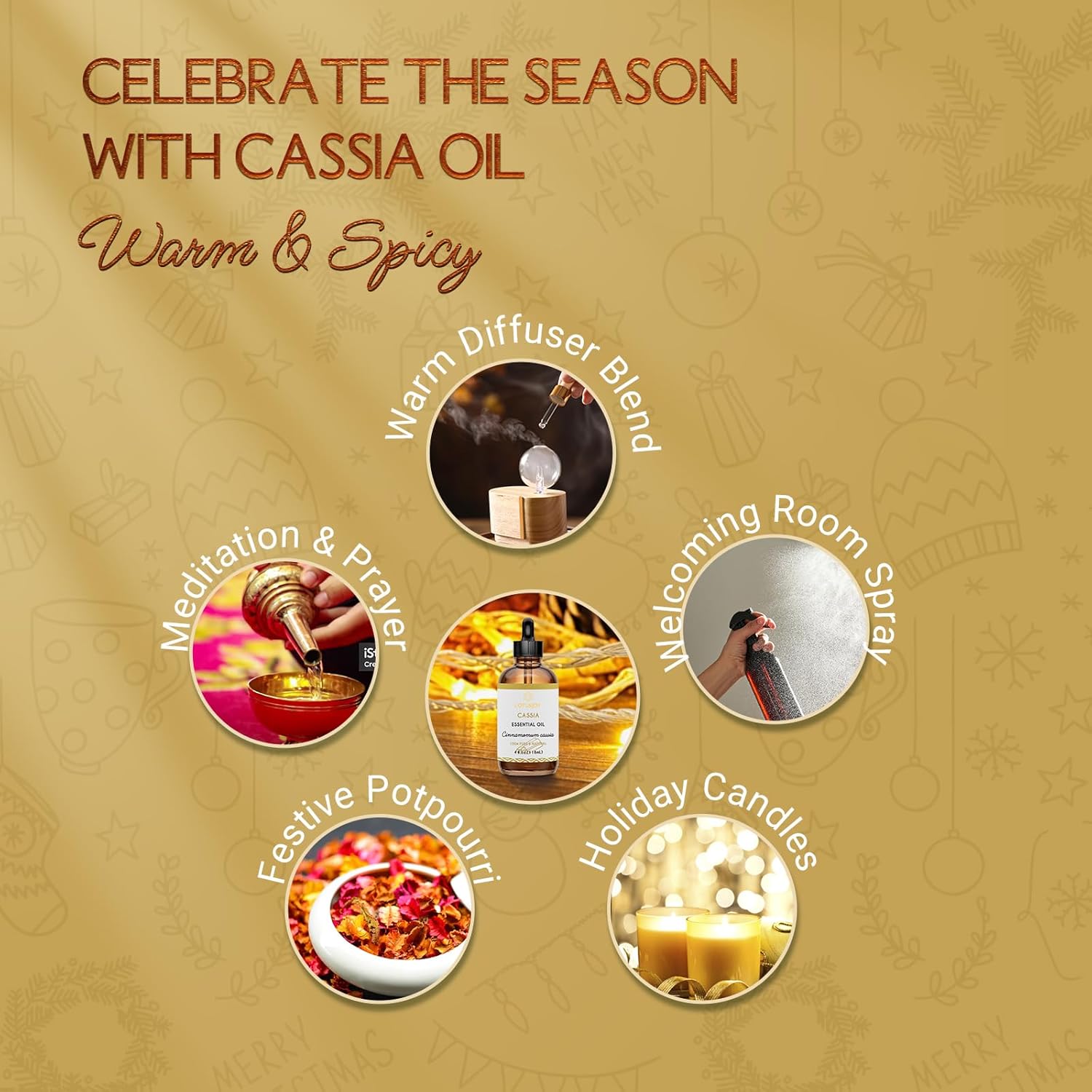 • Pure Cassia Cinnamon Oil: Our Cassia essential oil is steam distilled from the bark of the cinnamomum cassia tree, it is free from any synthetic additives or other impurities, ensuring that you get the best possible product