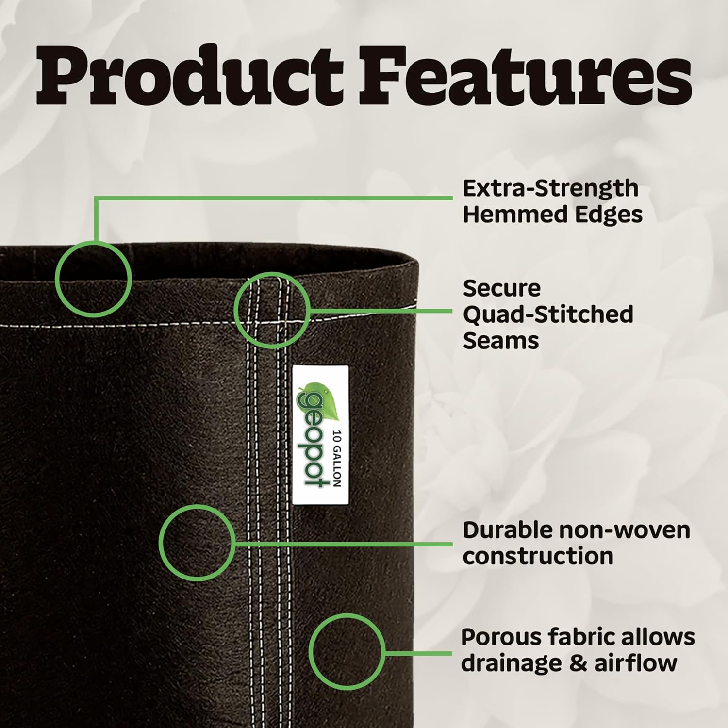 • Breathable Fabric for Healthier Roots Nonwoven fabric promotes airflow and drainage to prevent root rot and support vigorous root development through natural air pruning. No soggy soil, and no stunted growth!