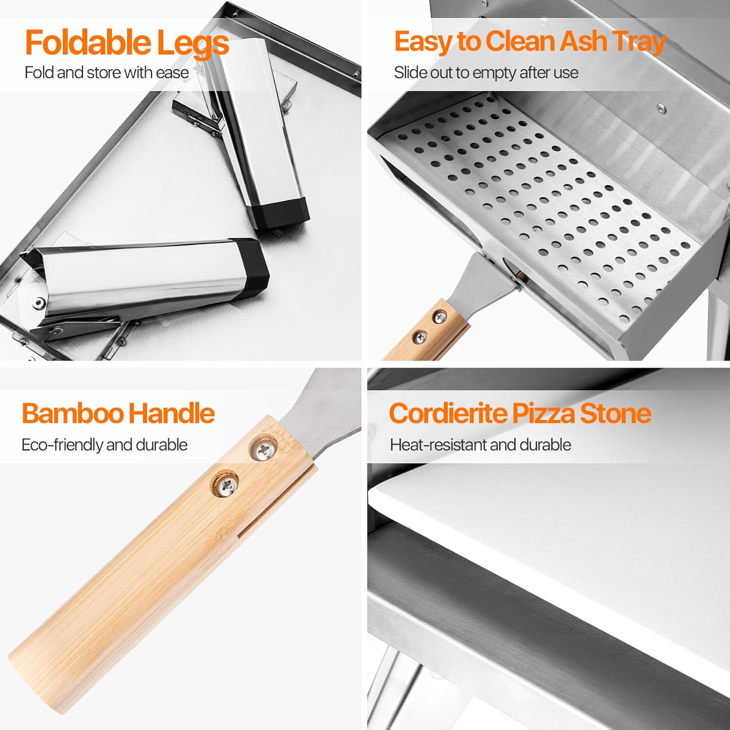 • Ultra-Portable & Ease of Assembly:The portable pizza oven is lightweight and durable with folding legs for simple assembly, no tools needed, quick disassembly and assembly for easy cleaning and storage, and weighs only 35 pounds, so you can have your own handmade, delicious pizzas anytime, anywhere, ideal for backyard or outdoor cooking events