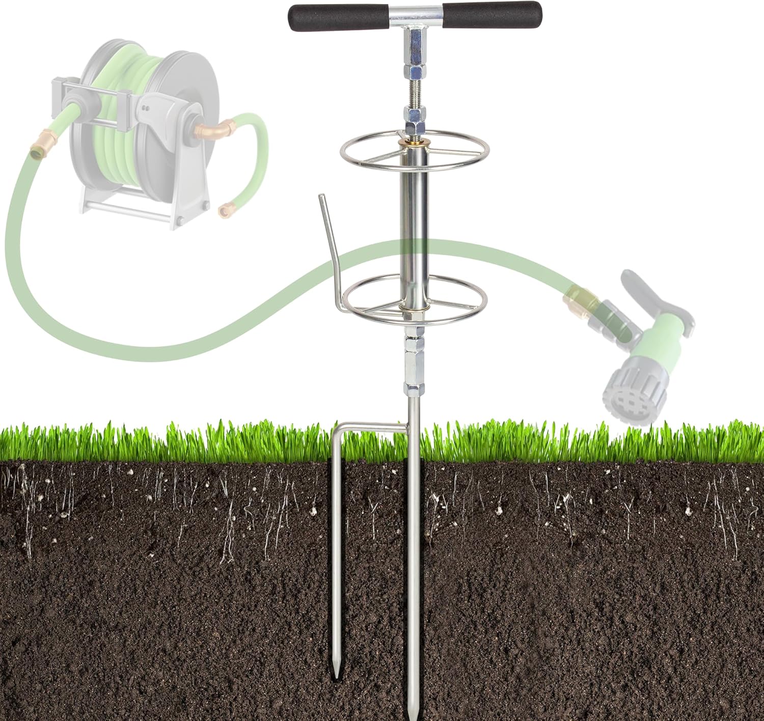 • Easy to Install: One of the key advantages of this hose holder is that it does not require any complex mounting onto the wall. Instead, for a hassle-free setup, all you need to do is simply step on the sturdy fixing points provided, which allows you to insert it securely into the ground with minimal effort and easily. Its placement can be tailored according to your specific requirements.
