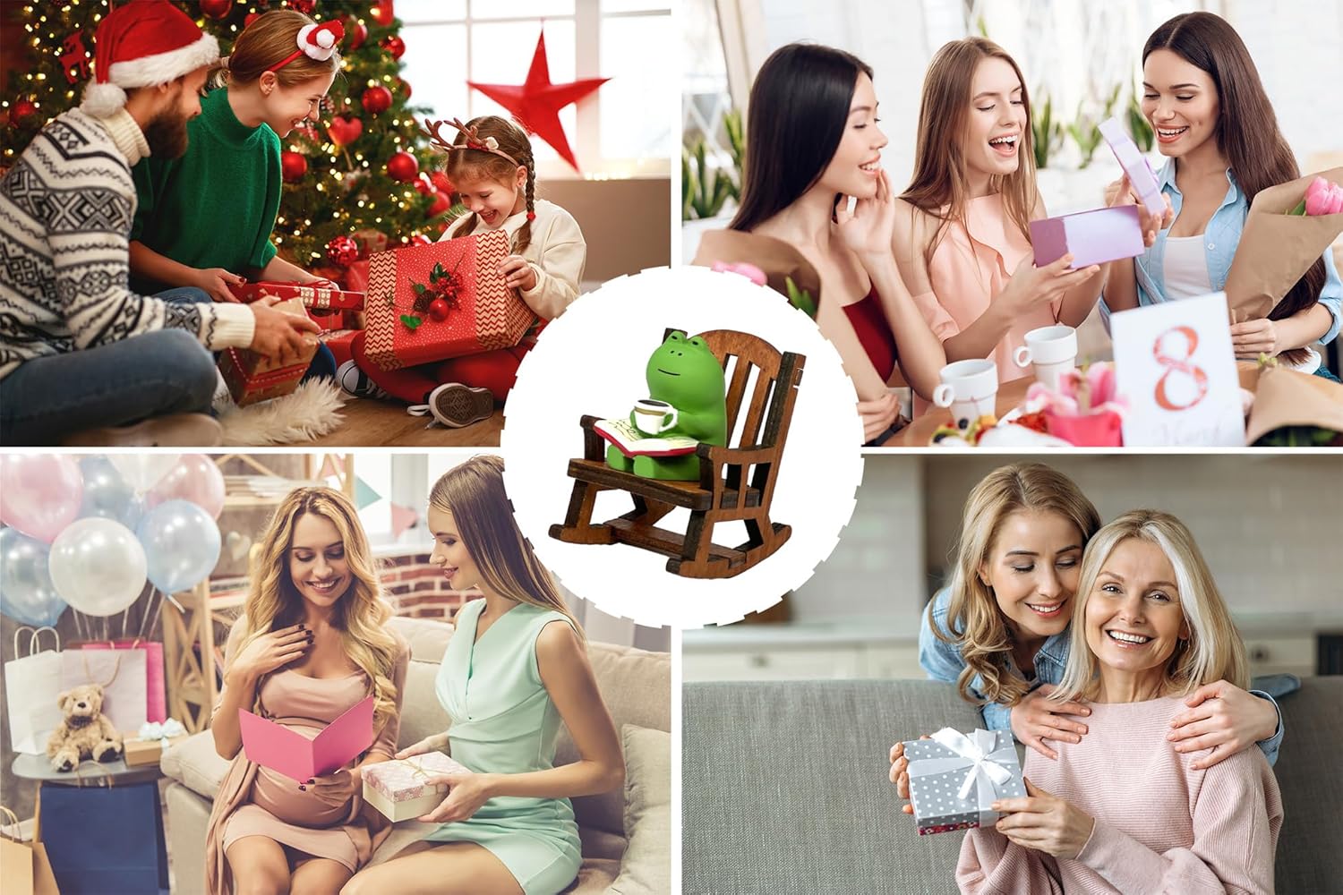 • Size and design: This set includes a frog sitting in a rocking chair enjoying coffee, a panda resting on the chair, and a desk with a table lamp and a cute cat statue. The design adds interest to your space and enhances your happiness