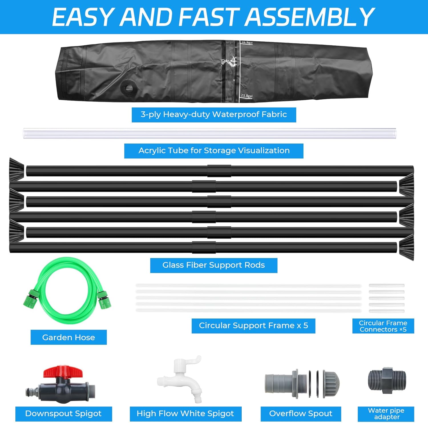 • Superior Stability: Water collection system to collect rainwater from gutterr einforced with Glass fiber Support Rods and a Circular Frame, ensures unrivaled stability. Resistant to extreme weather, rain water collection barrel remains steadfast and upright, preventing any swaying or tipping.