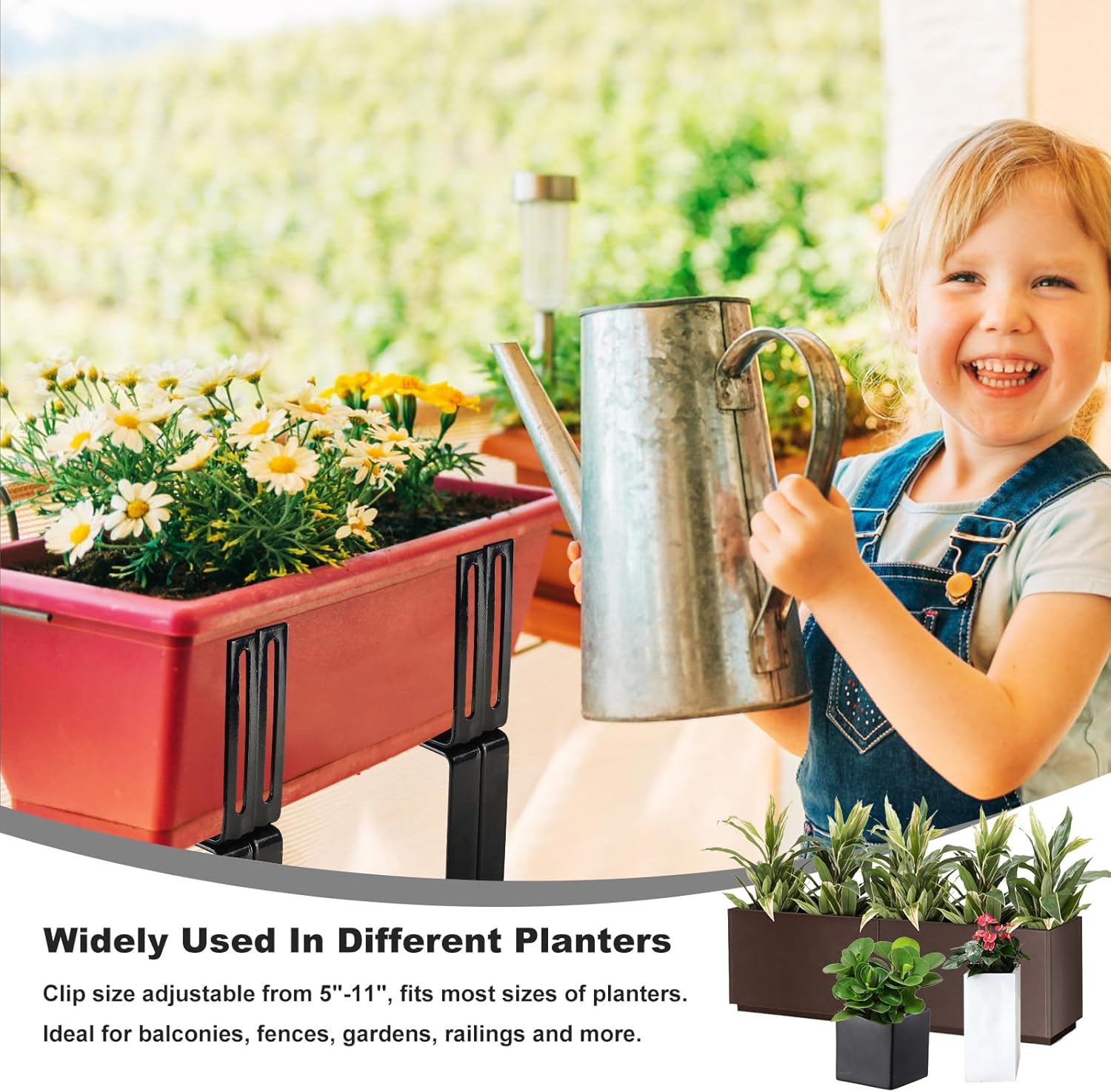 Deck Railing Planter Stand, Retractable Balcony Plant Holder for Window Box Planter, Handmade Steel Rectangular Flower Box Clip for Windowsill, Garden, Patio Fence, Front Porch